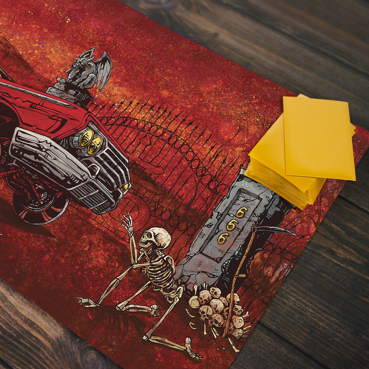 All Inked playmats are specially designed for you to play your favorite card games with style and finesse. Made with a smooth cloth top and rubber bottom, our mats allow you to pick up and move your cards with ease. That means no more sliding cards off the edges of tables or struggling to flip cards over at the most pivotal moment of battle. And with different sizing options available - Standard and Oversized - our playmats are made to fit every style of play. So, if you’re the type of player who requires a little extra elbow room, there’s a mat for that! No matter the size, these mats are ideal for keeping your precious cards and sleeves in good condition as well. When it comes to crafting the perfect playmat, quality and care is the name of the game. With a playmat like this, you’ll be hard-pressed to find anything else that comes close!