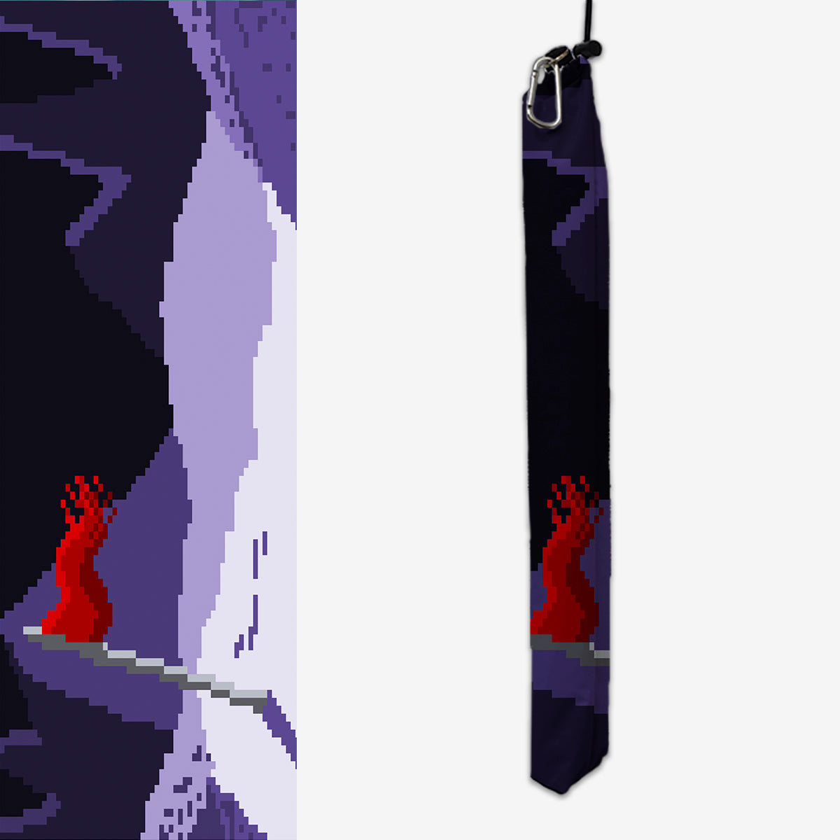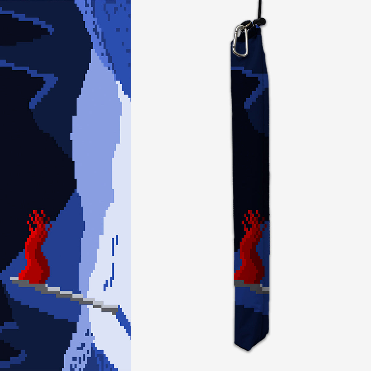 Playmat Bags are specifically designed to hold your mats in style. They are large enough to carry up to two mats. They are coated to be water resistant and include a strap with carabiner for carrying on your backpack. Our bags are hand made in house, and to order. A design that is vertical or patterned would be best for this type of product.