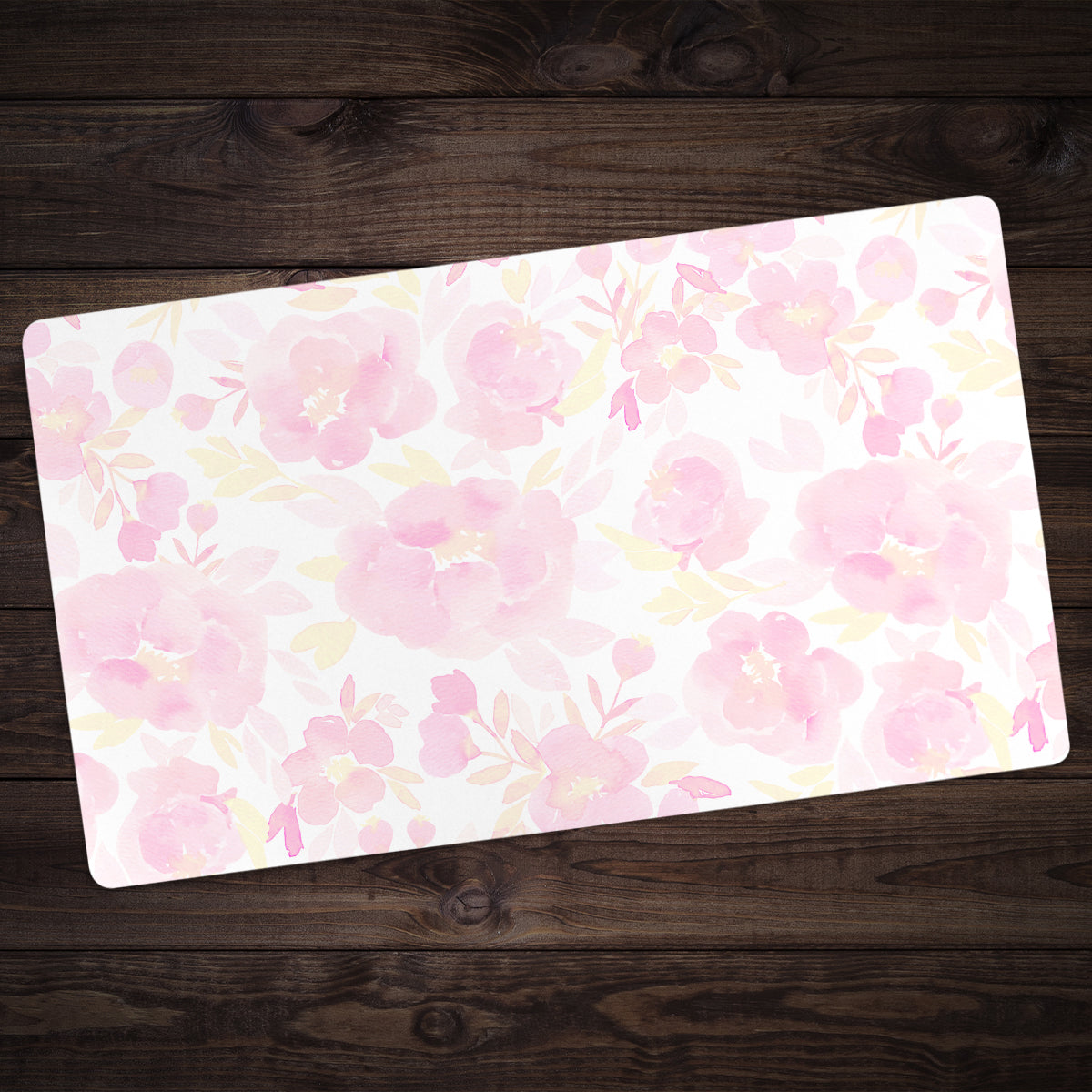 Standard Playmat measures at 24” x 14” inches and is 1/16 of an inch thick. It’s made with a smooth cloth top and strong rubber backing.