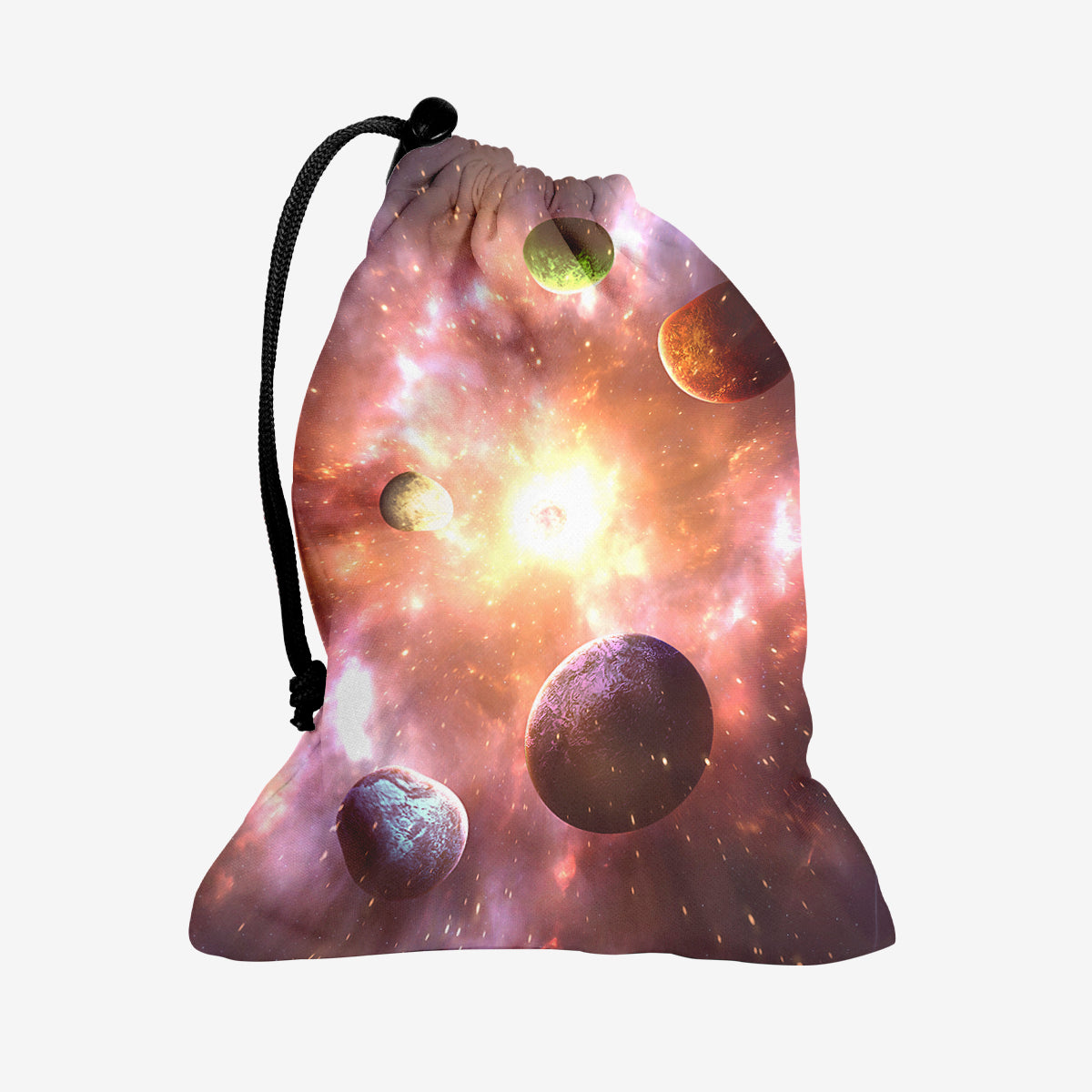 Always gaming on the go? Carry everything you need and more using our specially crafted dice bag. But this bag is designed to hold more than just dice. We make it so you can carry other essential accessories and gear with your dice, including deck boxes, life counters, extra sleeves, and pens. Quality is just as important as quantity, which is why our dice bags are crafted using premium material as well. Featuring a soft inner lining and microfiber on the inside and vibrant pre-designed artwork on the outside, our dice bag has an amazing look and feel to it!