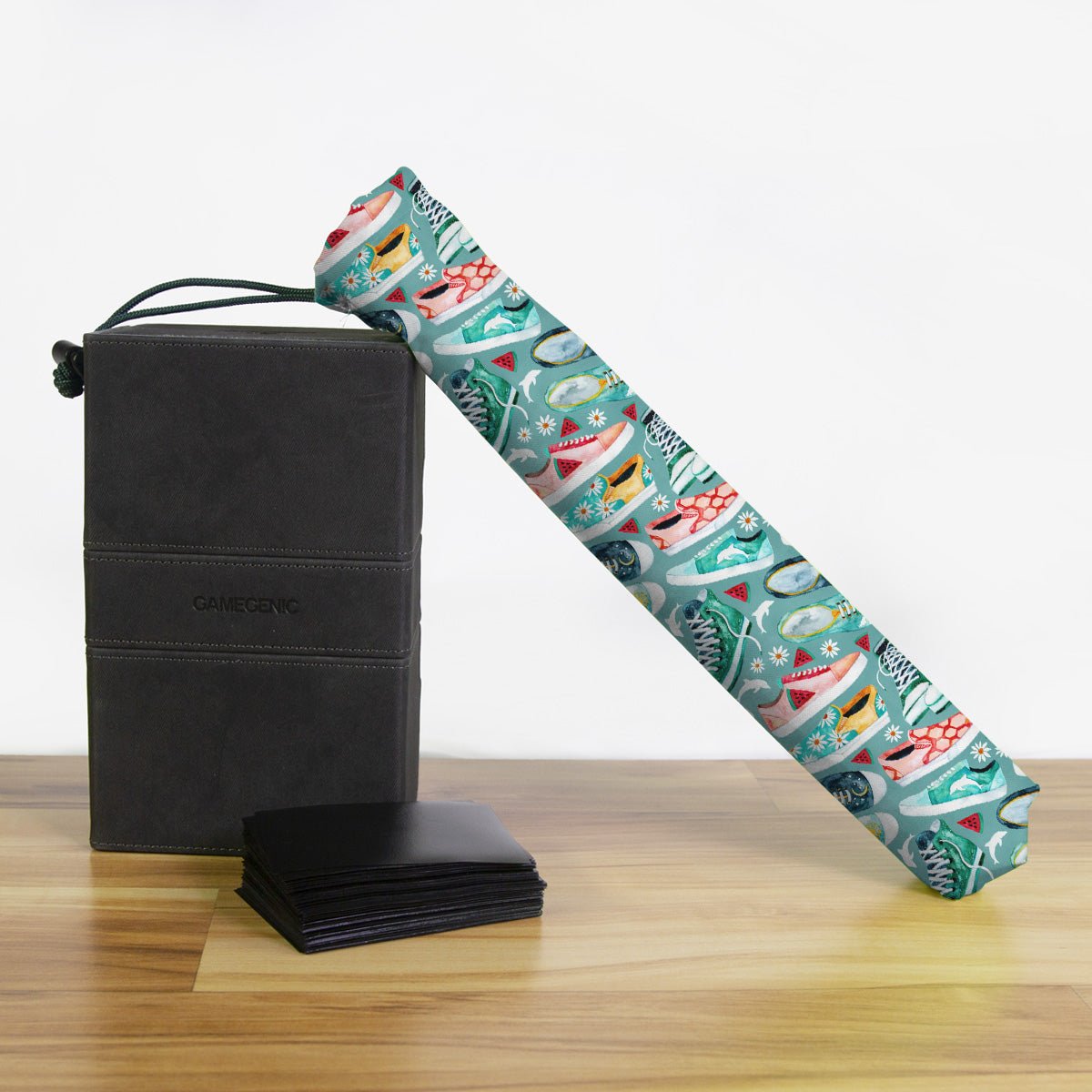 Keep your playmat in pristine condition wherever you go with one of our handcrafted playmat bags. This playmat bag is specifically designed to protect your playmat and can hold two standard sized mats at the same time (in case you need a backup or your friend forgets theirs). Each bag is made in-house and features a water-resistant coating along with a drawstring and carabiner clip for secure carrying. So you can take your game anywhere and in any weather.