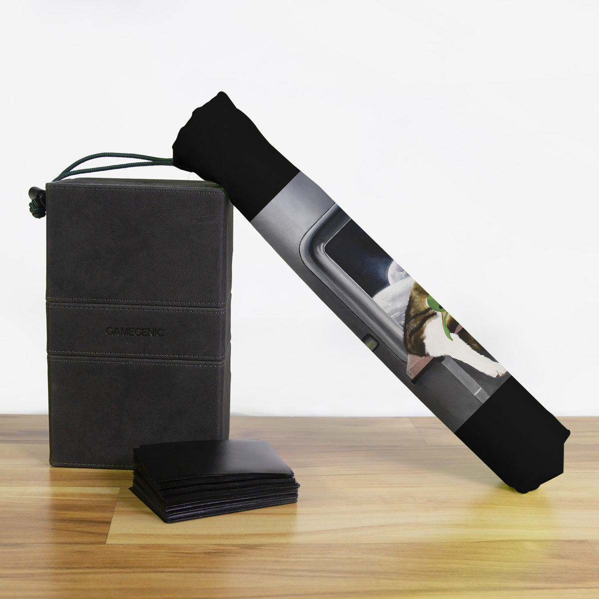 Keep your playmat in pristine condition wherever you go with one of our handcrafted playmat bags. This playmat bag is specifically designed to protect your playmat and can hold two standard sized mats at the same time (in case you need a backup or your friend forgets theirs). Each bag is made in-house and features a water-resistant coating along with a drawstring and carabiner clip for secure carrying. So you can take your game anywhere and in any weather.