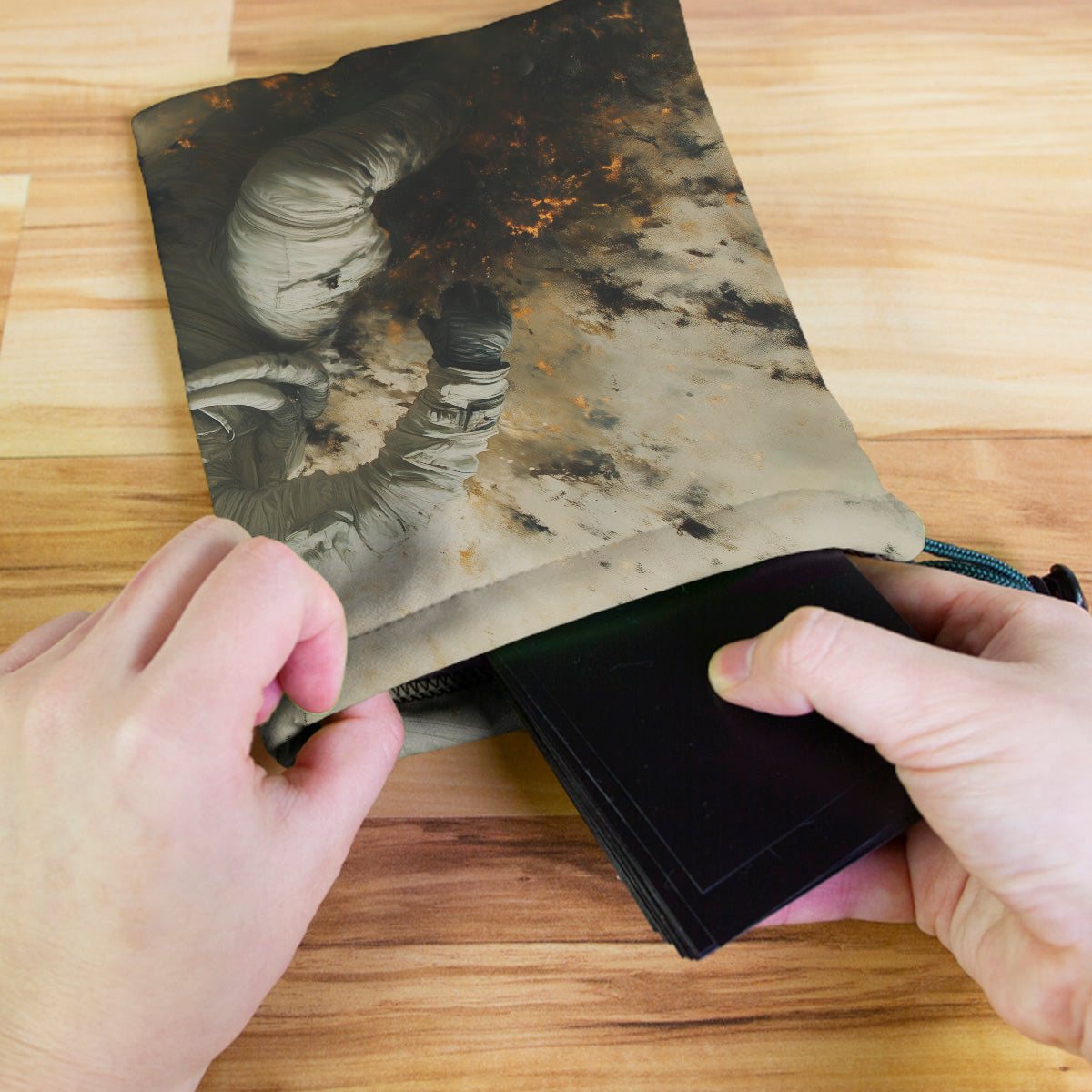 Always gaming on the go? Carry everything you need and more using our specially crafted dice bag. But this bag is designed to hold more than just dice. We make it so you can carry other essential accessories and gear with your dice, including deck boxes, life counters, extra sleeves, and pens. Quality is just as important as quantity, which is why our dice bags are crafted using premium material as well. Featuring a soft inner lining and microfiber on the inside and vibrant pre-designed artwork on the outside, our dice bag has an amazing look and feel to it!