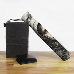 Keep your playmat in pristine condition wherever you go with one of our handcrafted playmat bags. This playmat bag is specifically designed to protect your playmat and can hold two standard sized mats at the same time (in case you need a backup or your friend forgets theirs). Each bag is made in-house and features a water-resistant coating along with a drawstring and carabiner clip for secure carrying. So you can take your game anywhere and in any weather.