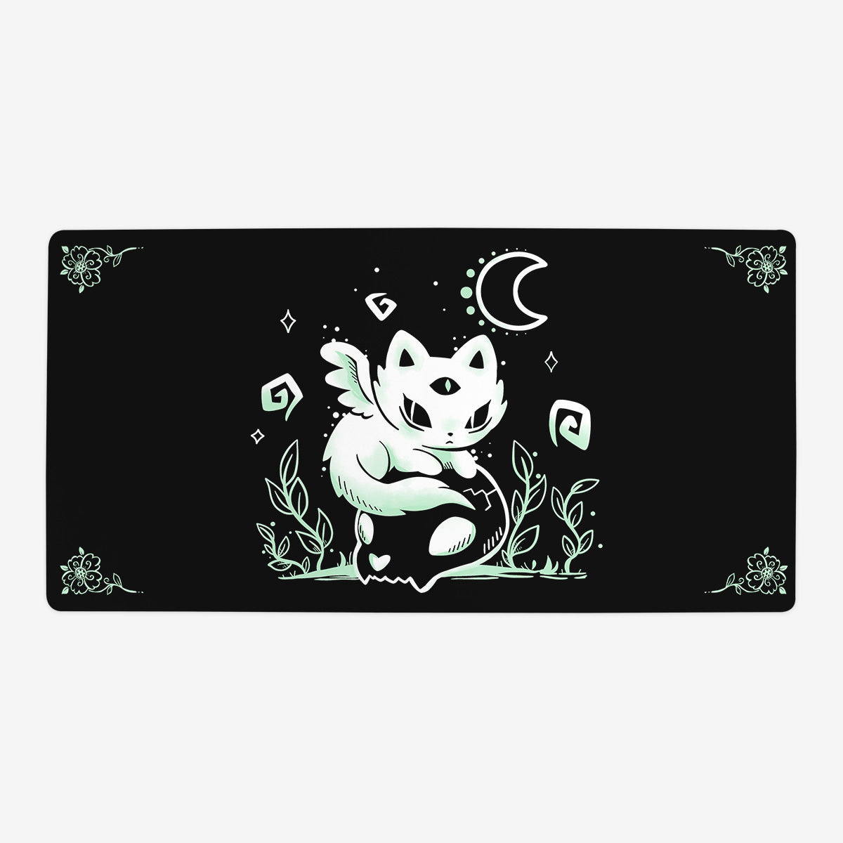 Oversized Playmat measures at 28” x 14” inches and is 1/16 of an inch thick. It’s made with a smooth cloth top and strong rubber backing.