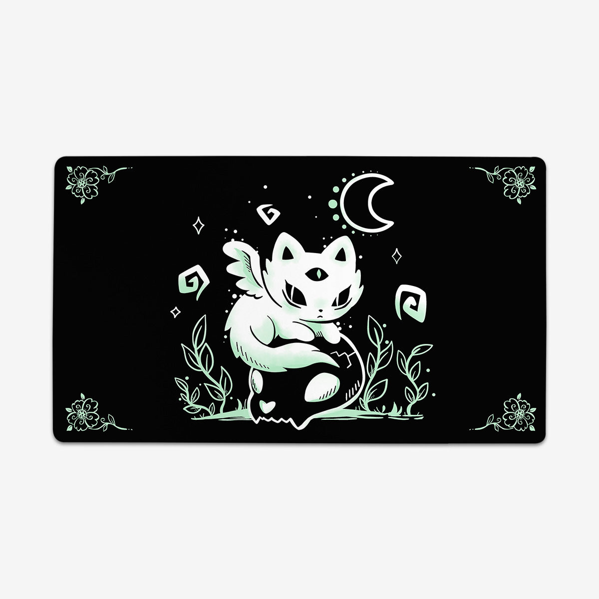 Standard Playmat measures at 24” x 14” inches and is 1/16 of an inch thick. It’s made with a smooth cloth top and strong rubber backing.