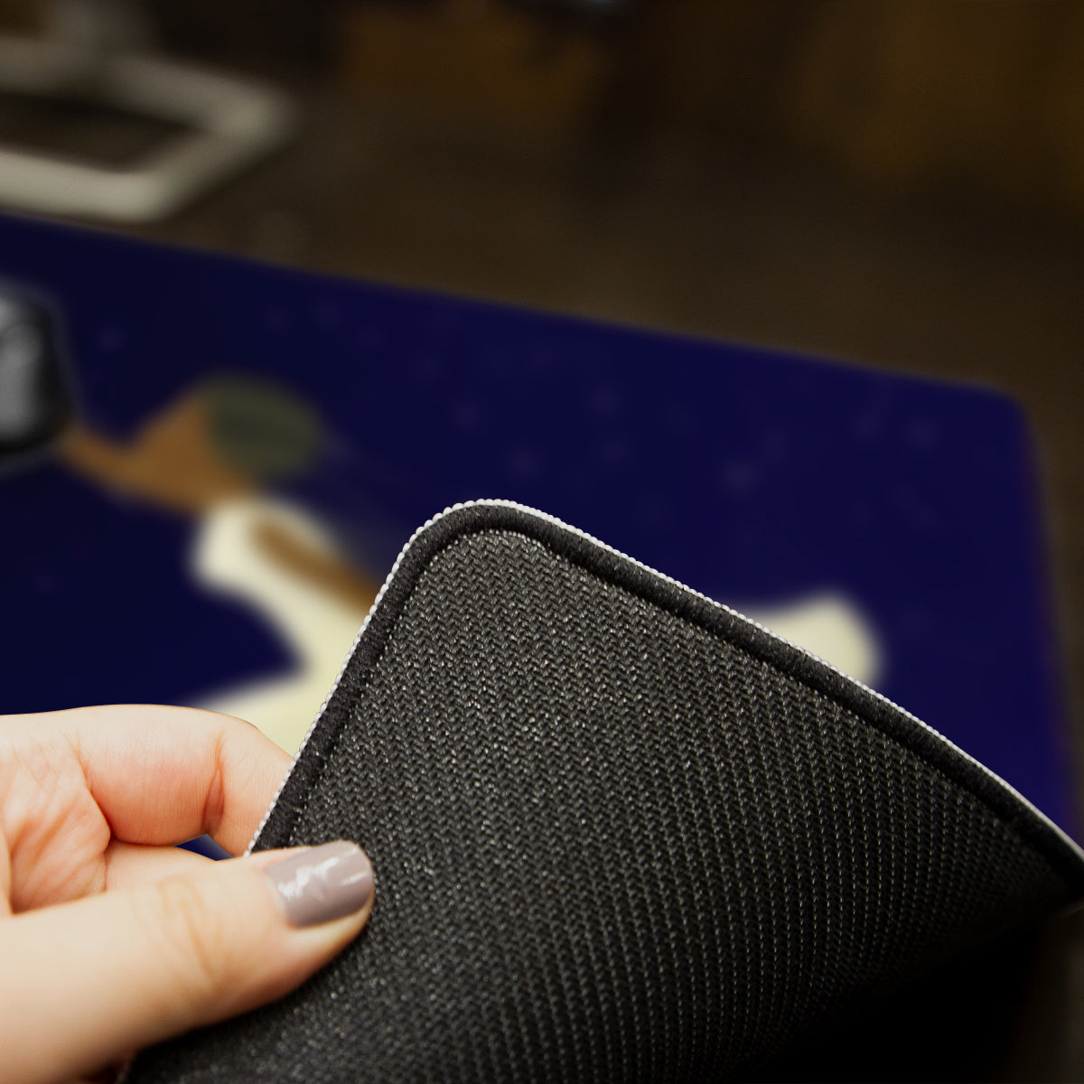 Need a new mousepad that features quality craftsmanship and creativity? Then you’ve definitely come to the right place. Our mousepads are made in-house with premium materials and unique artwork that give your battlestation the supreme look and feel that it deserves. The top is made from sleek polyester, which enables faster, more precise mouse movements. This enhanced speed and precision come in handy whether you’re working or gaming. On the bottom, there’s a strong anti-slip rubber backing that holds a nice, tight grip on your desk while you’re doing your thing. The action and traction this pad provides give you a better overall experience in completing daily tasks, deadlines, and missions of all kinds. And because we’ve added more sizing options to it, you no longer have to worry about running out of room at the worst moments either. The sizes are Classic, Large, and XL. The Classic mousepad has unstitched edges. However, the Large mousepad does include stitched edging, while the XL mousepad has both a stitched or unstitched edging option available. You can see the approximate measurements of all those sizes in the details below. We think you’ll be impressed…if you aren’t already!
