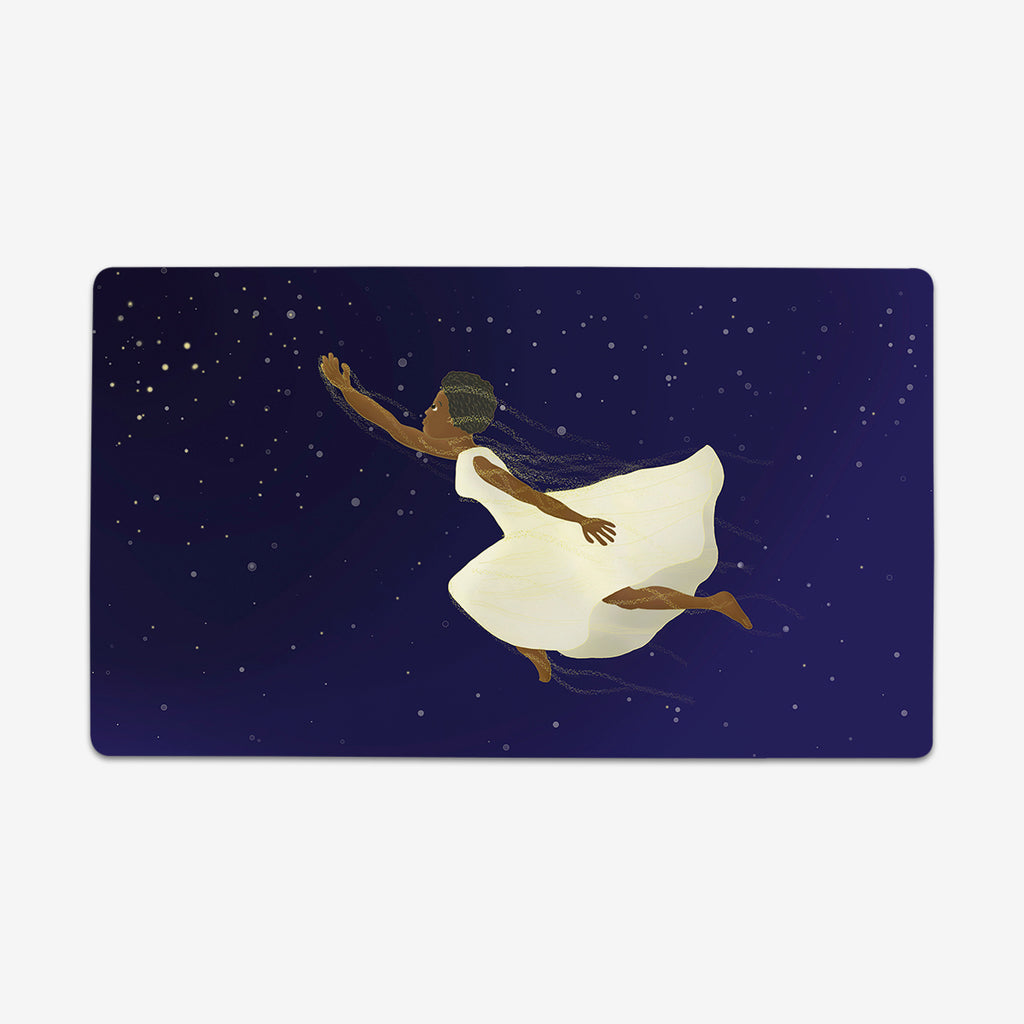 Standard Playmat measures at 24” x 14” inches and is 1/16 of an inch thick. It’s made with a smooth cloth top and strong rubber backing.