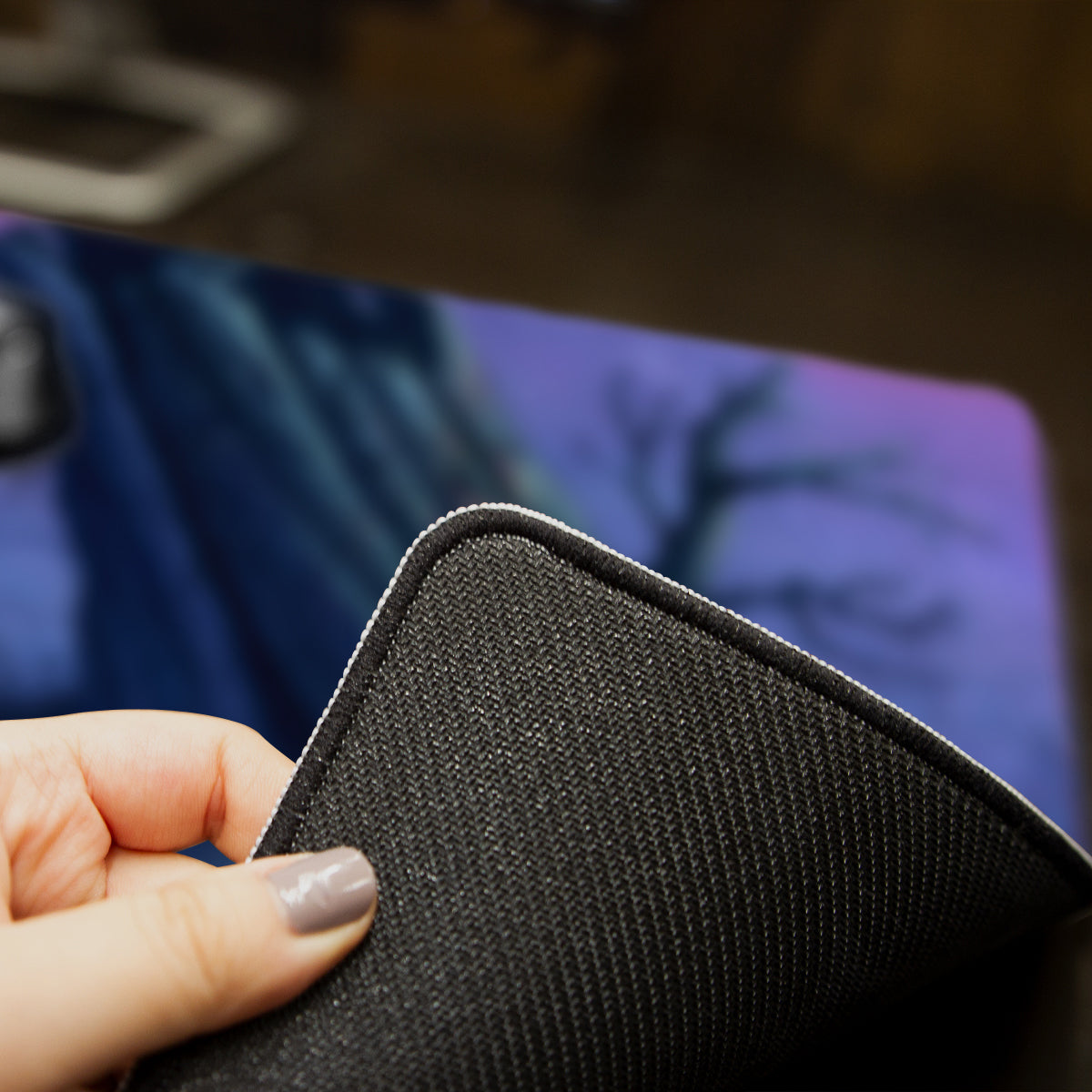 Need a new mousepad that features quality craftsmanship and creativity? Then you’ve definitely come to the right place. Our mousepads are made in-house with premium materials and unique artwork that give your battlestation the supreme look and feel that it deserves. The top is made from sleek polyester, which enables faster, more precise mouse movements. This enhanced speed and precision come in handy whether you’re working or gaming. On the bottom, there’s a strong anti-slip rubber backing that holds a nice, tight grip on your desk while you’re doing your thing. The action and traction this pad provides give you a better overall experience in completing daily tasks, deadlines, and missions of all kinds. And because we’ve added more sizing options to it, you no longer have to worry about running out of room at the worst moments either. The sizes are Classic, Large, and XL. The Classic mousepad has unstitched edges. However, the Large mousepad does include stitched edging, while the XL mousepad has both a stitched or unstitched edging option available. You can see the approximate measurements of all those sizes in the details below. We think you’ll be impressed…if you aren’t already!