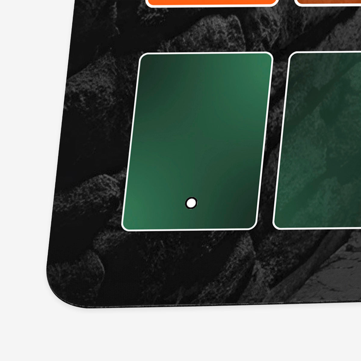 Standard Playmat measures at 24” x 14” inches and is 1/16 of an inch thick. It’s made with a smooth cloth top and strong rubber backing.