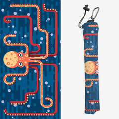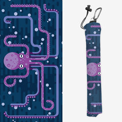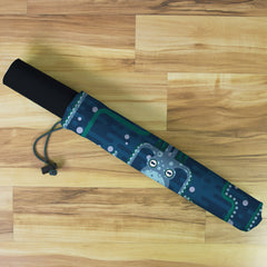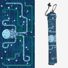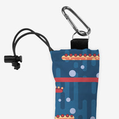 Playmat Bags are specifically designed to hold your mats in style. They are large enough to carry up to two mats. They are coated to be water resistant and include a strap with carabiner for carrying on your backpack. Our bags are hand made in house, and to order. A design that is vertical or patterned would be best for this type of product.