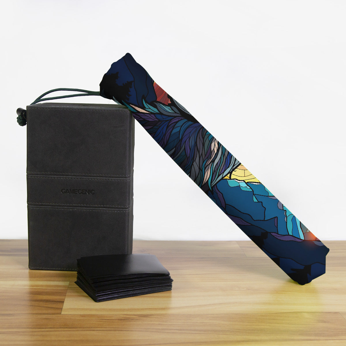 Keep your playmat in pristine condition wherever you go with one of our handcrafted playmat bags. This playmat bag is specifically designed to protect your playmat and can hold two standard sized mats at the same time (in case you need a backup or your friend forgets theirs). Each bag is made in-house and features a water-resistant coating along with a drawstring and carabiner clip for secure carrying. So you can take your game anywhere and in any weather.