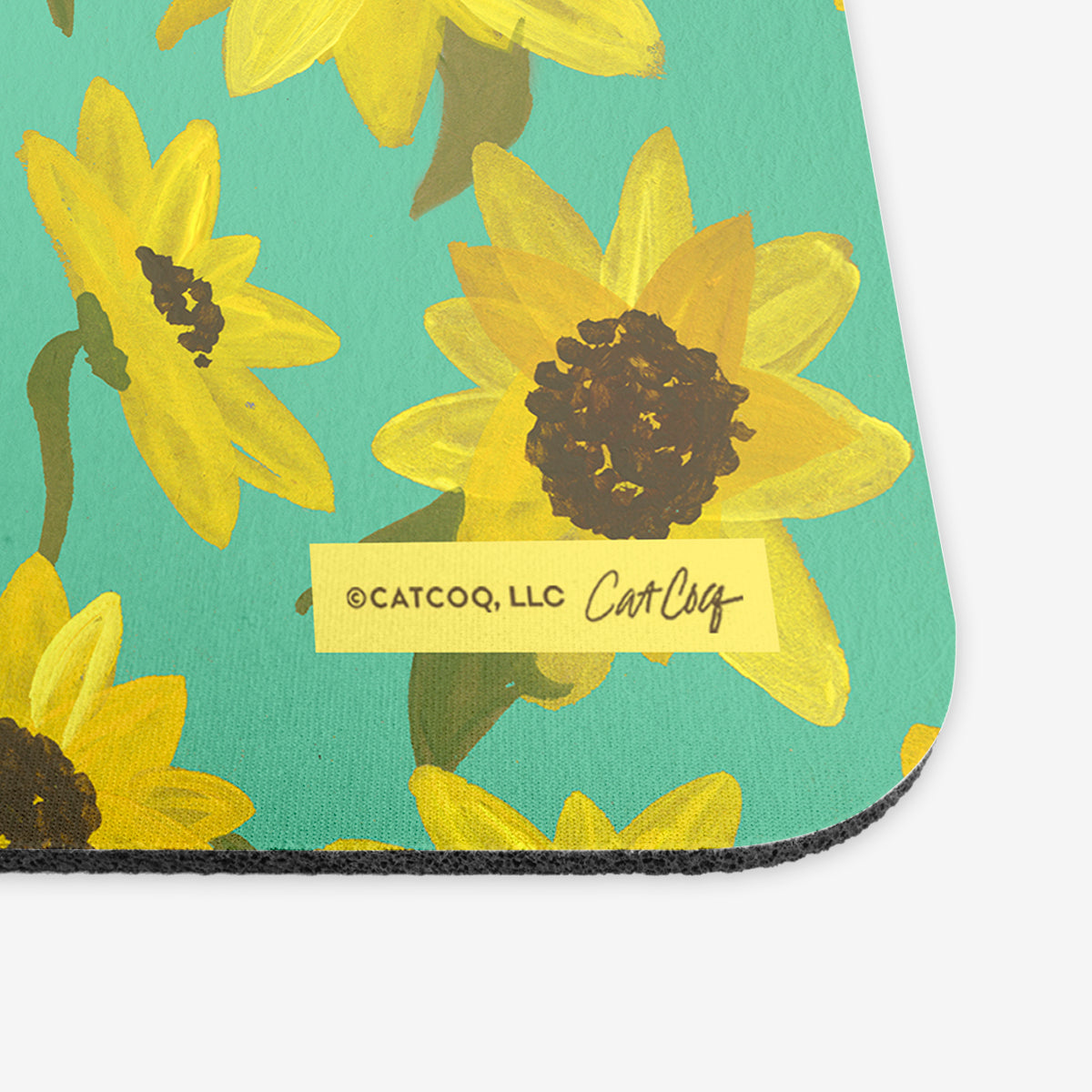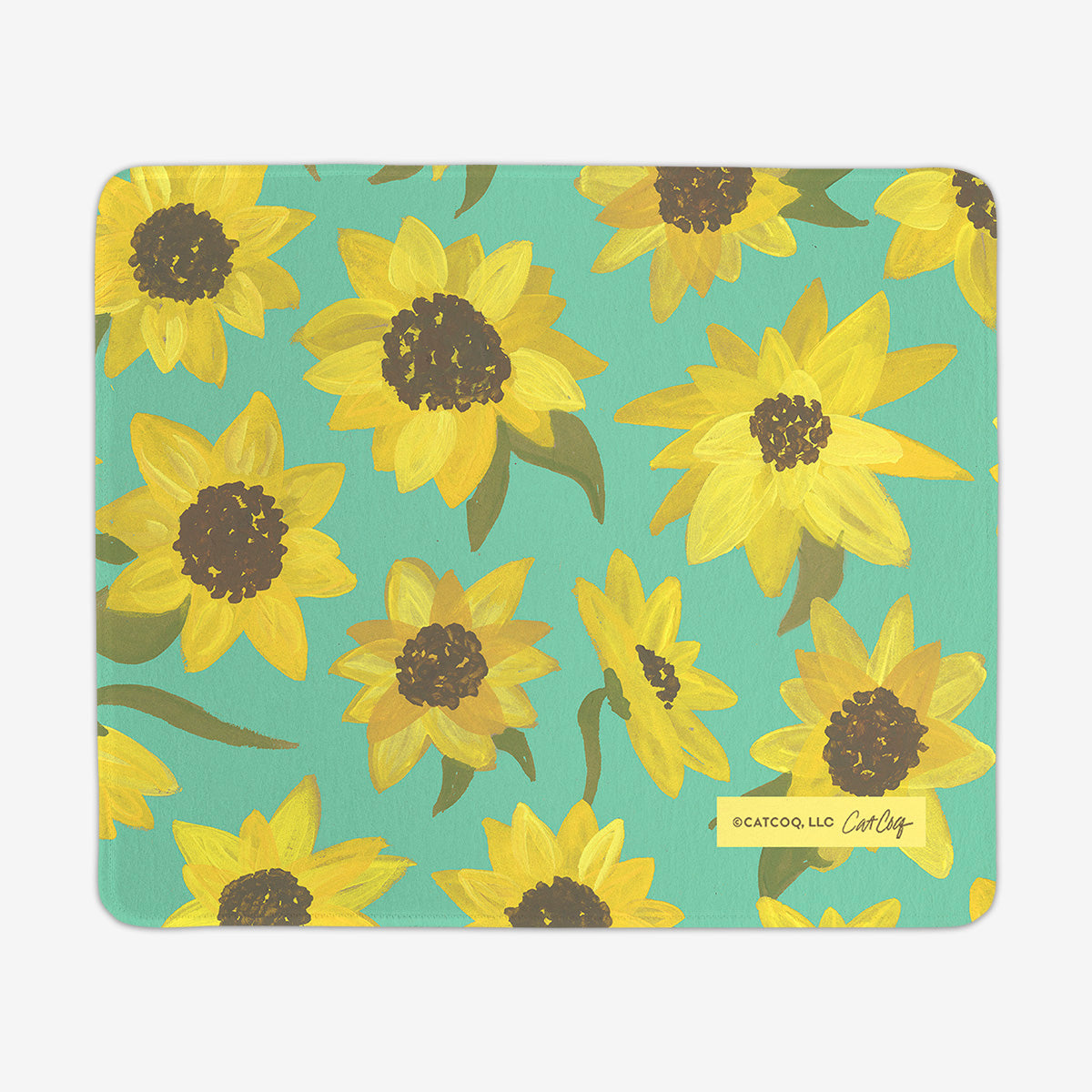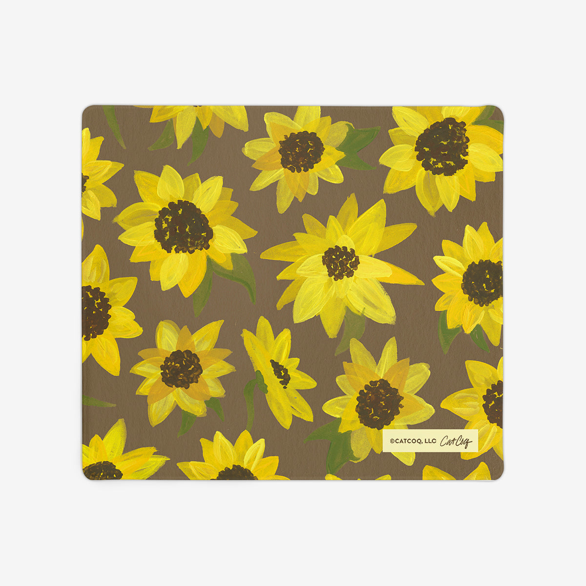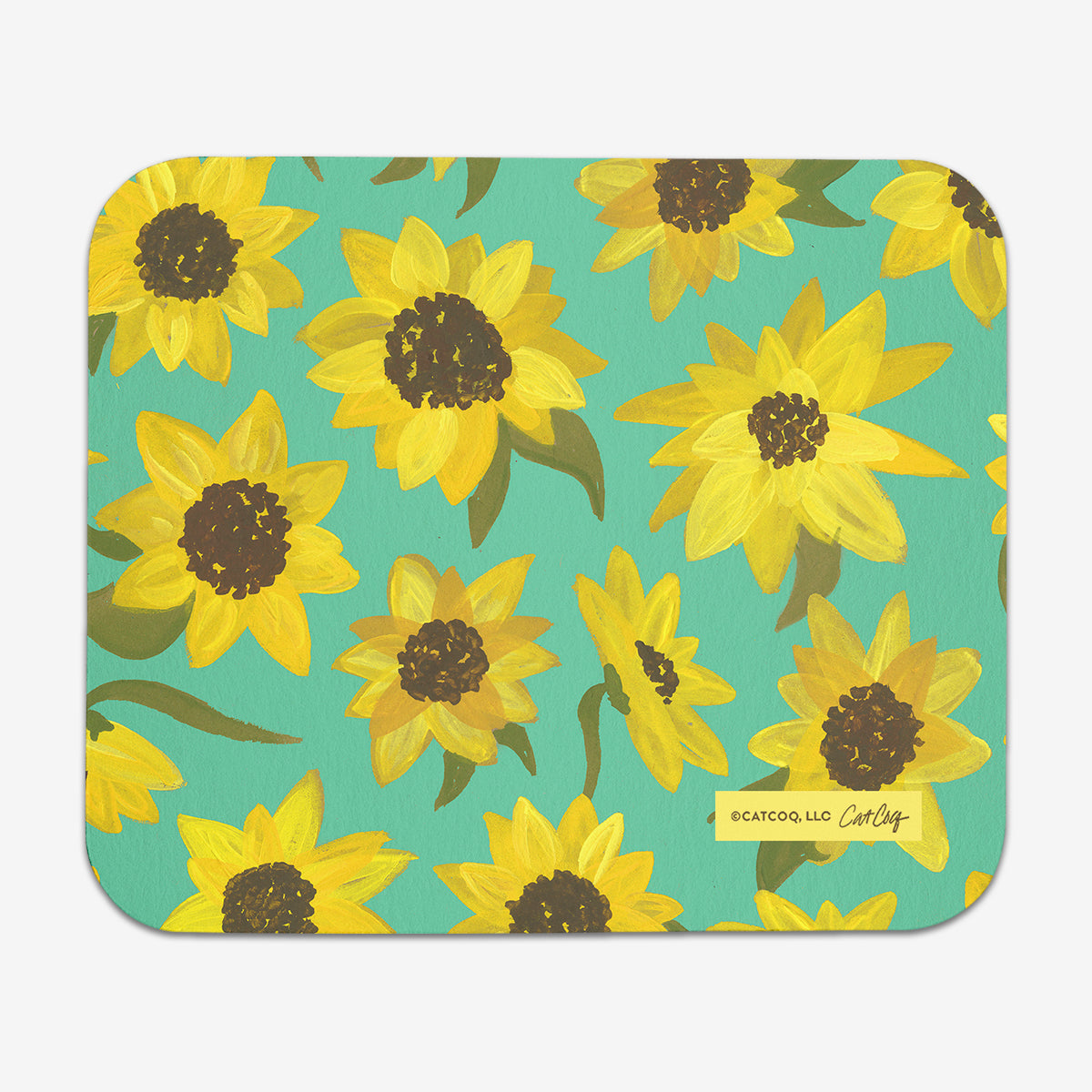 Having a nice-looking playmat is half the fun, which is why we like CatCoq’s Sunflowers Acrylic Mousepad. And you will, too. The top of this mousepad is made from sleek polyester that grants you faster, more precise mouse movements. The rubber backing on the bottom holds a nice, firm grip on your desk and ensures that it will stay still and tight while you’re doing your thing. Whether it’s work or play, this mousepad is ideal for helping you to rise above any challenge that comes your way. And because we’ve added more sizing options to it, you no longer have to worry about running out of room at the worst moments either. See the sizes we offer below.