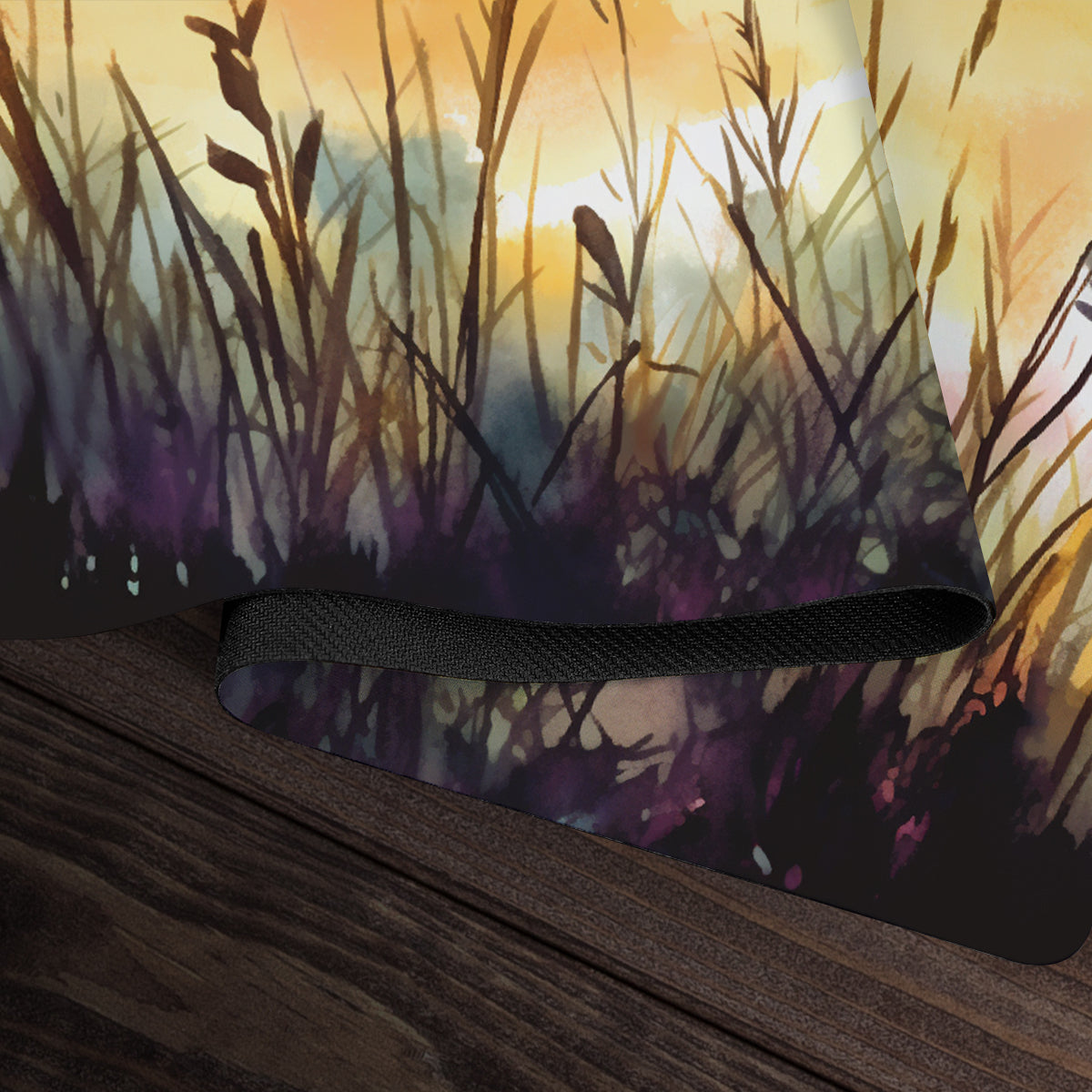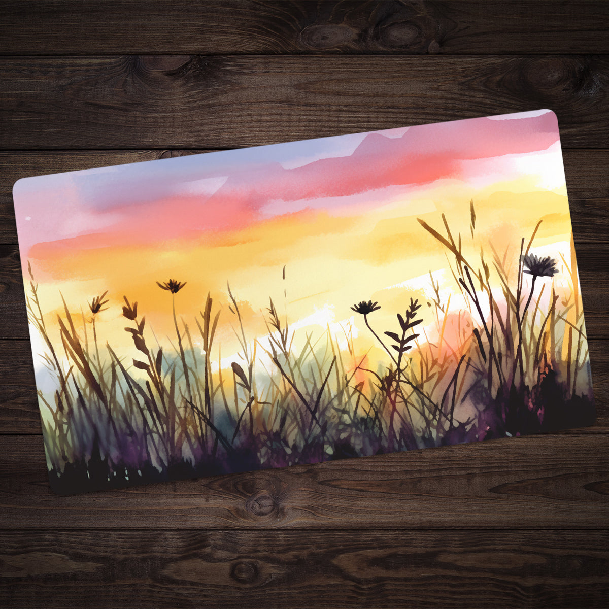Standard Playmat measures at 24” x 14” inches and is 1/16 of an inch thick. It’s made with a smooth cloth top and strong rubber backing.
