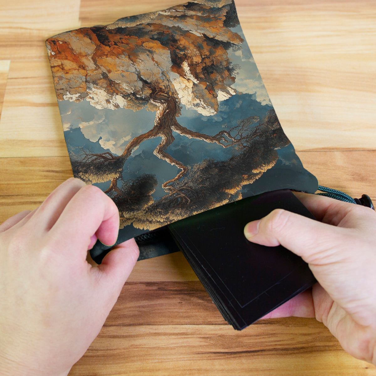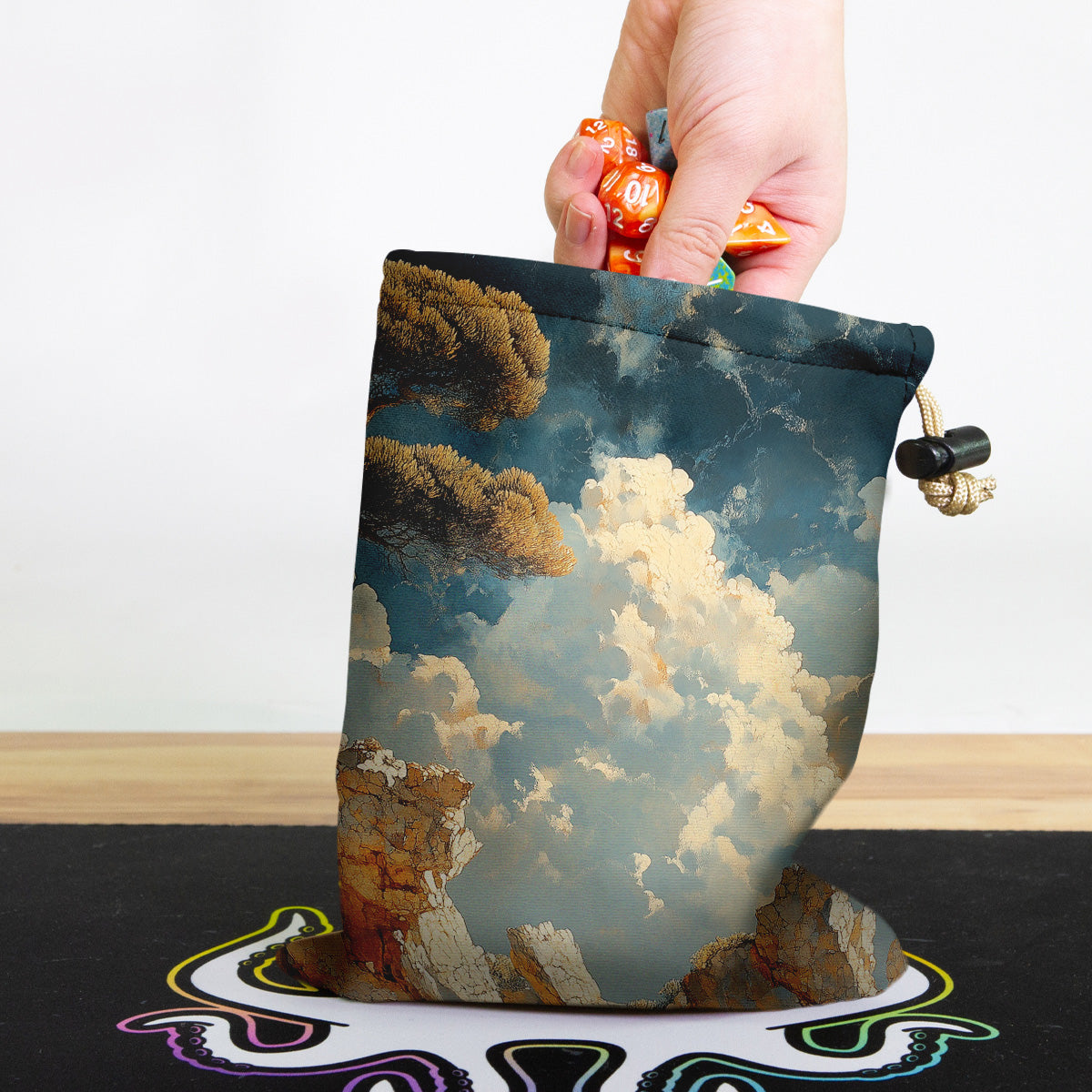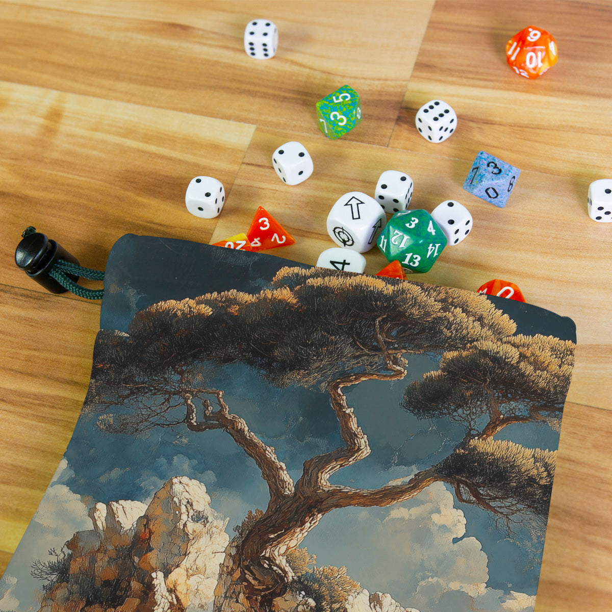 Always gaming on the go? Carry everything you need and more using our specially crafted dice bag. But this bag is designed to hold more than just dice. We make it so you can carry other essential accessories and gear with your dice, including deck boxes, life counters, extra sleeves, and pens. Quality is just as important as quantity, which is why our dice bags are crafted using premium material as well. Featuring a soft inner lining and microfiber on the inside and vibrant pre-designed artwork on the outside, our dice bag has an amazing look and feel to it!
