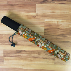 Playmat Bags are specifically designed to hold your mats in style. They are large enough to carry up to two mats. They are coated to be water resistant and include a strap with carabiner for carrying on your backpack. Our bags are hand made in house, and to order. A design that is vertical or patterned would be best for this type of product.
