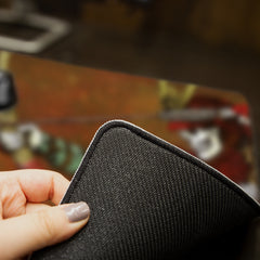 Need a new mousepad that features quality craftsmanship and creativity? Then you’ve definitely come to the right place. Our mousepads are made in-house with premium materials and unique artwork that give your battlestation the supreme look and feel that it deserves. The top is made from sleek polyester, which enables faster, more precise mouse movements. This enhanced speed and precision come in handy whether you’re working or gaming. On the bottom, there’s a strong anti-slip rubber backing that holds a nice, tight grip on your desk while you’re doing your thing. The action and traction this pad provides give you a better overall experience in completing daily tasks, deadlines, and missions of all kinds. And because we’ve added more sizing options to it, you no longer have to worry about running out of room at the worst moments either. The sizes are Classic, Large, and XL. The Classic mousepad has unstitched edges. However, the Large mousepad does include stitched edging, while the XL mousepad has both a stitched or unstitched edging option available. You can see the approximate measurements of all those sizes in the details below. We think you’ll be impressed…if you aren’t already!