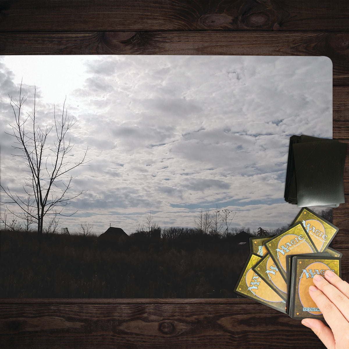 Standard Playmat measures at 24” x 14” inches and is 1/16 of an inch thick. It’s made with a smooth cloth top and strong rubber backing.