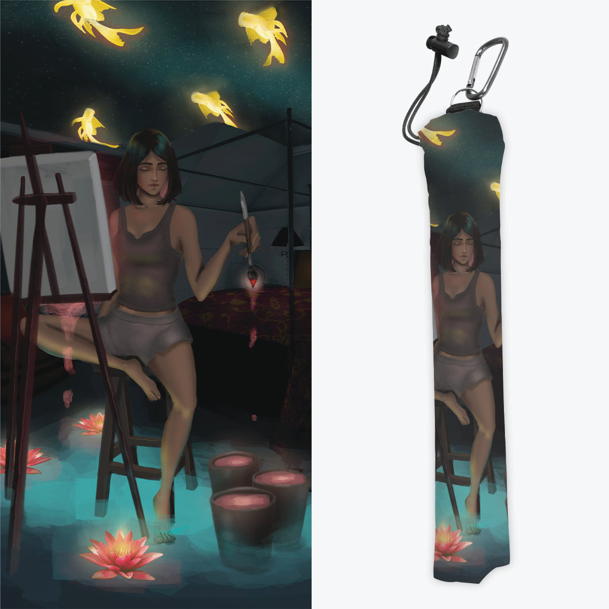 Keep your playmat in pristine condition wherever you go with one of our handcrafted playmat bags. This playmat bag is specifically designed to protect your playmat and can hold two standard sized mats at the same time (in case you need a backup or your friend forgets theirs). Each bag is made in-house and features a water-resistant coating along with a drawstring and carabiner clip for secure carrying. So you can take your game anywhere and in any weather.
