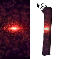 Playmat Bags are specifically designed to hold your mats in style. They are large enough to carry up to two mats. They are coated to be water resistant and include a strap with carabiner for carrying on your backpack. Our bags are hand made in house, and to order. A design that is vertical or patterned would be best for this type of product.