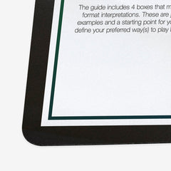 Standard Playmat measures at 24” x 14” inches and is 1/16 of an inch thick. It’s made with a smooth cloth top and strong rubber backing.