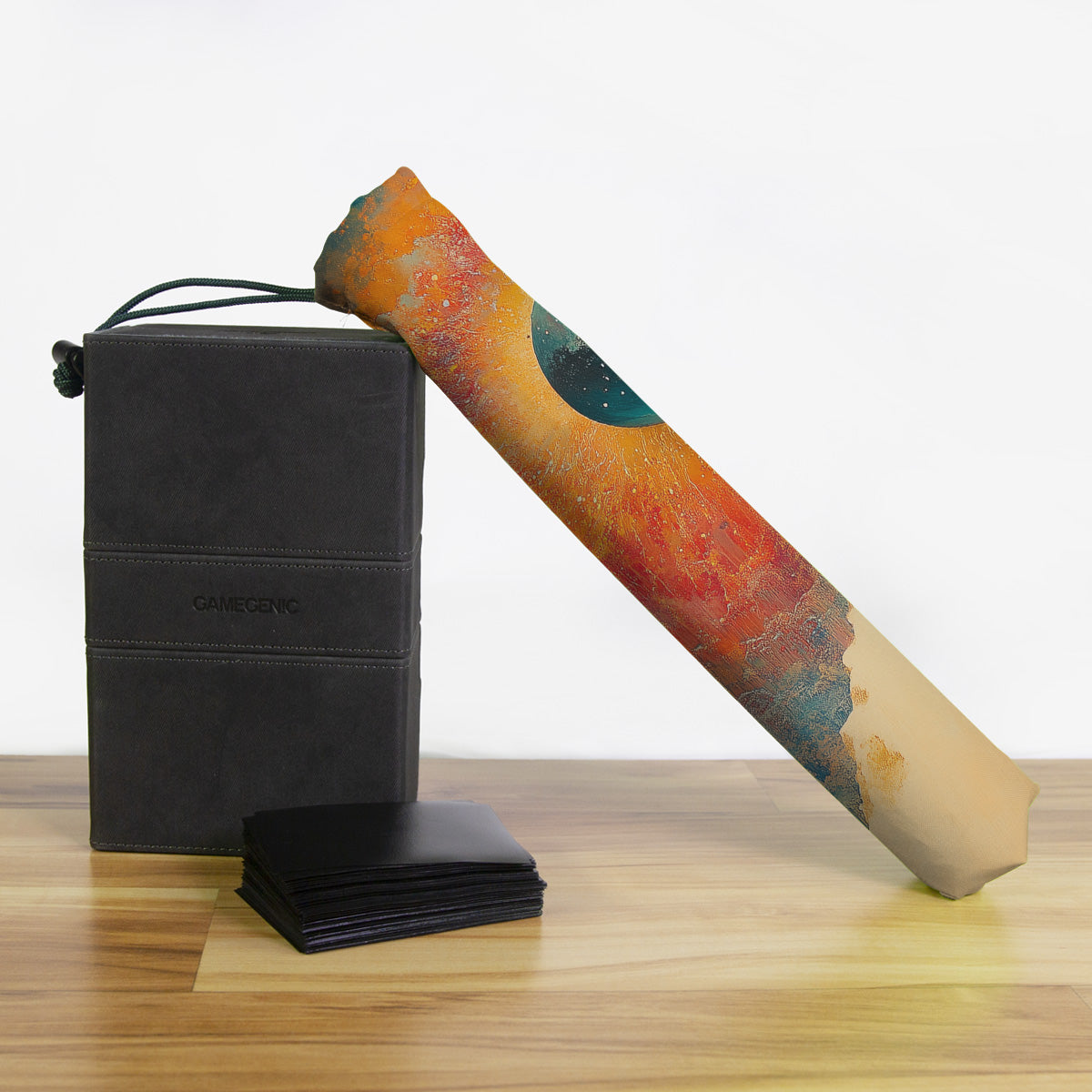 Keep your playmat in pristine condition wherever you go with one of our handcrafted playmat bags. This playmat bag is specifically designed to protect your playmat and can hold two standard sized mats at the same time (in case you need a backup or your friend forgets theirs). Each bag is made in-house and features a water-resistant coating along with a drawstring and carabiner clip for secure carrying. So you can take your game anywhere and in any weather.