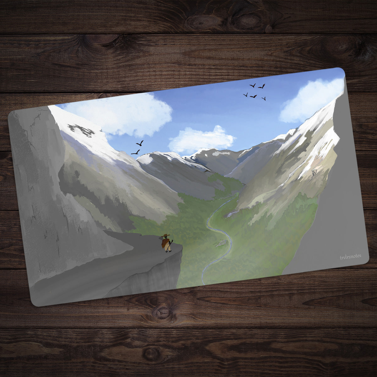 Standard Playmat measures at 24” x 14” inches and is 1/16 of an inch thick. It’s made with a smooth cloth top and strong rubber backing.
