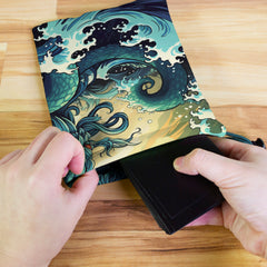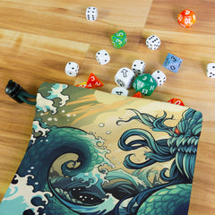Always gaming on the go? Carry everything you need and more using our specially crafted dice bag. But this bag is designed to hold more than just dice. We make it so you can carry other essential accessories and gear with your dice, including deck boxes, life counters, extra sleeves, and pens. Quality is just as important as quantity, which is why our dice bags are crafted using premium material as well. Featuring a soft inner lining and microfiber on the inside and vibrant pre-designed artwork on the outside, our dice bag has an amazing look and feel to it!