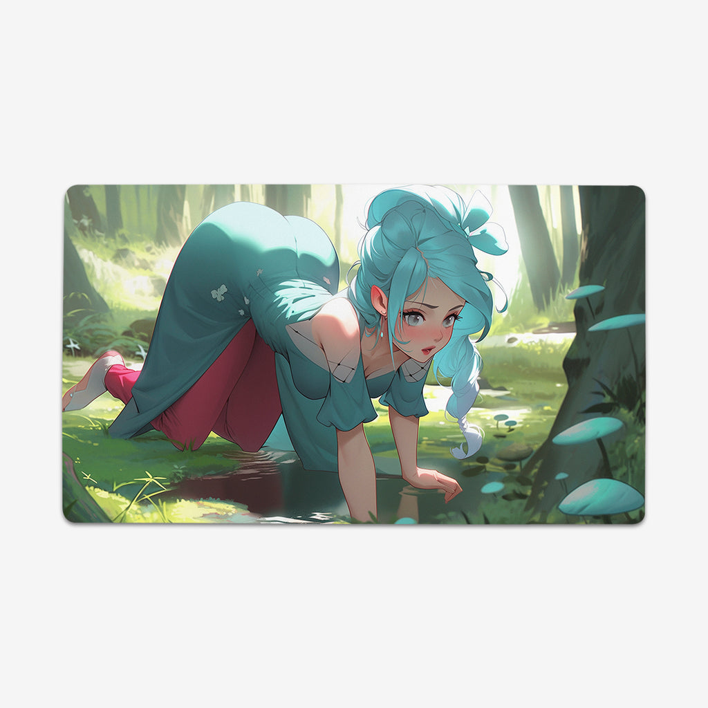 Standard Playmat measures at 24” x 14” inches and is 1/16 of an inch thick. It’s made with a smooth cloth top and strong rubber backing.