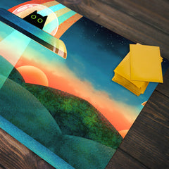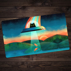 TigaTigaIf you’re looking for a mat that will make everyone at the table ‘paws’ and do a double-take, this Purrfect Alien Playmat from TigaTiga should do the trick. We don’t need a beam to draw gamers into using this mat. Instead, the design, craft, and quality do that for us, which is what passionate players look for when searching for the ‘purrfect’ cloth playmat. The smooth, soft material on the top makes it easy to handle cards without damaging them. The anti-slip rubber backing on the bottom of the mat is also a useful feature that prevents it from sliding or shifting during gameplay. Overall, this is a playmat designed to provide a comfortable and stable surface for gamers to play on, while also adding a touch of personality and fun with its unique design. By bringing these materials and artwork together, we’ve created a playmat that even most ‘extra-purrestrials’ couldn’t replicate!