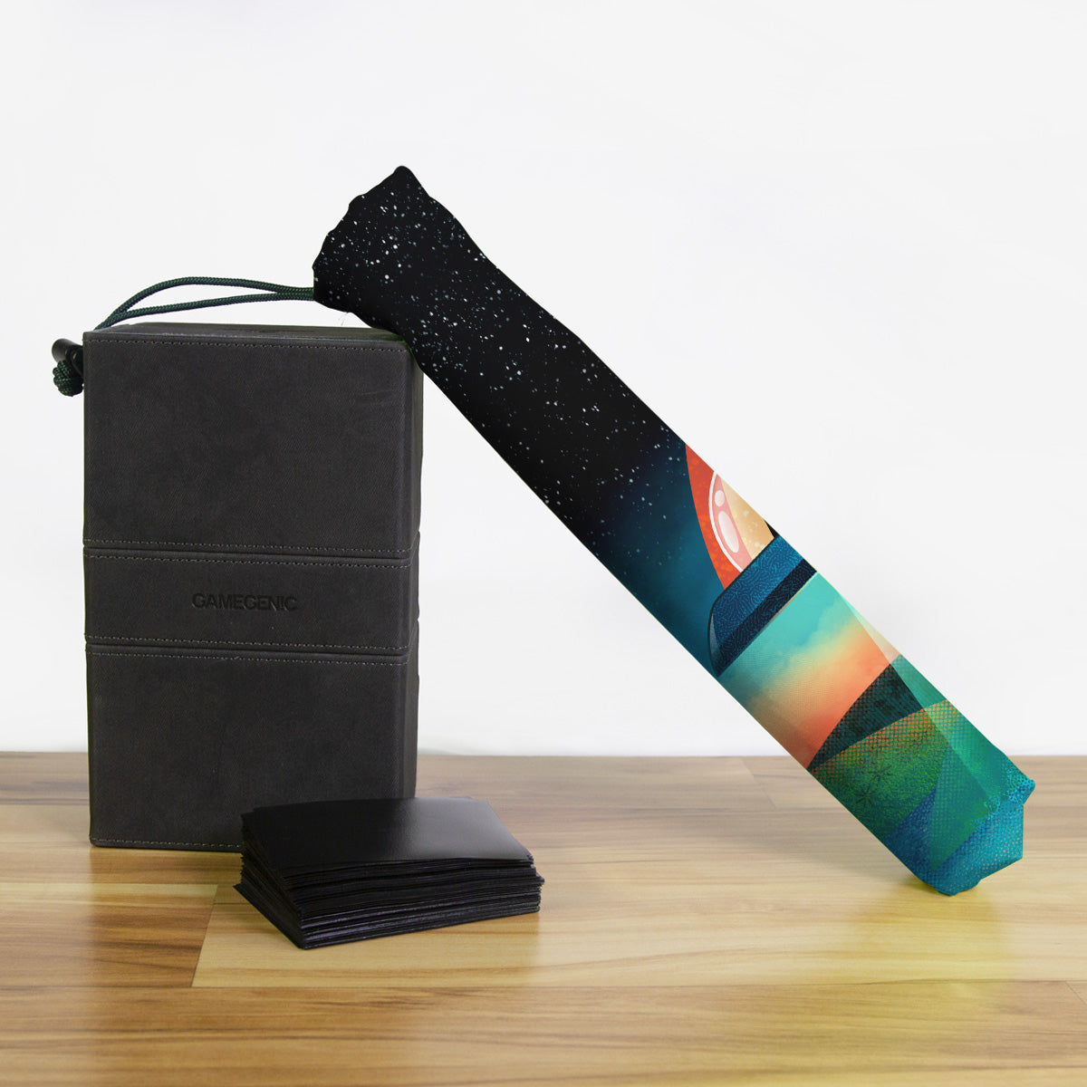 Playmat Bags are specifically designed to hold your mats in style. They are large enough to carry up to two mats. They are coated to be water resistant and include a strap with carabiner for carrying on your backpack. Our bags are hand made in house, and to order. A design that is vertical or patterned would be best for this type of product.