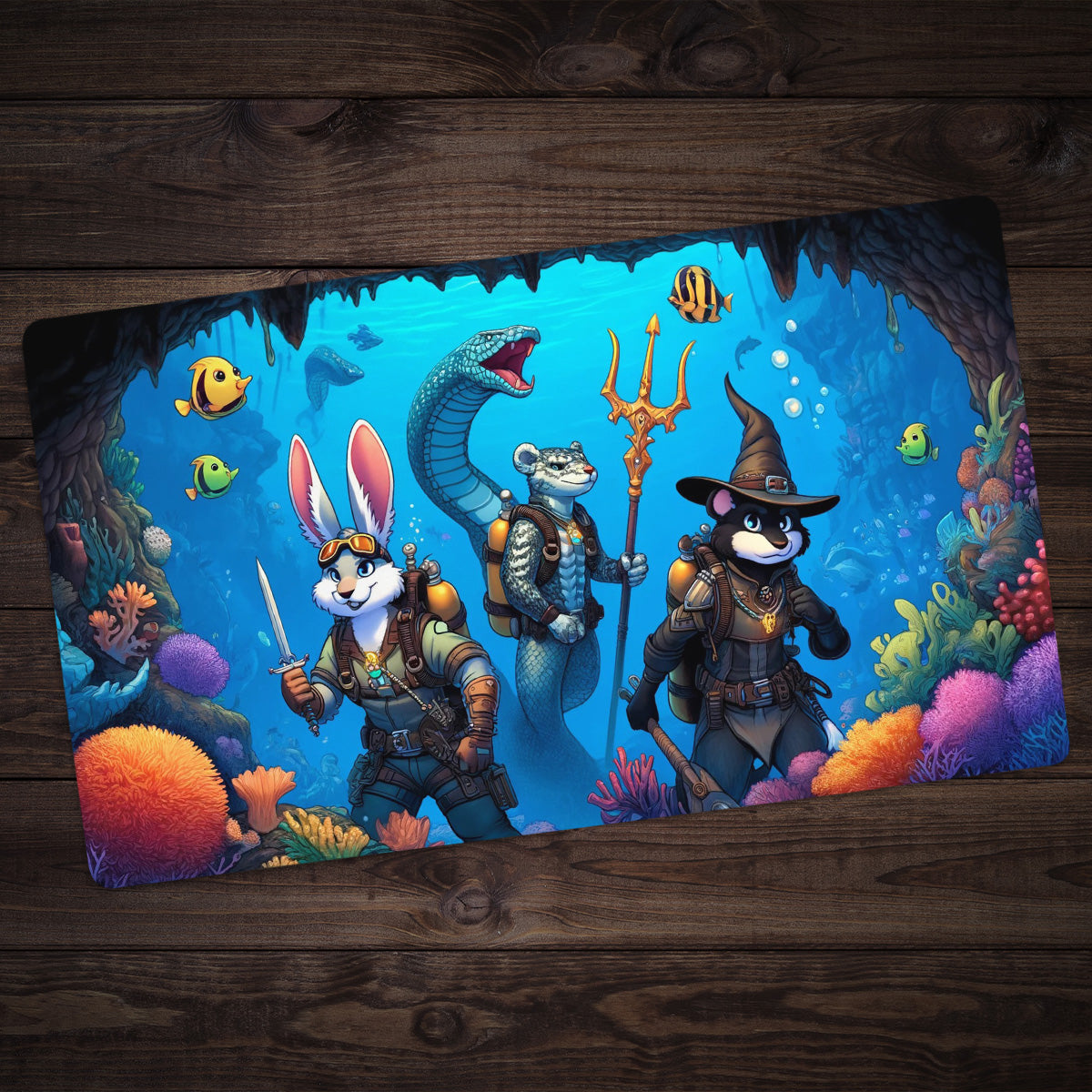 Standard Playmat measures at 24” x 14” inches and is 1/16 of an inch thick. It’s made with a smooth cloth top and strong rubber backing.