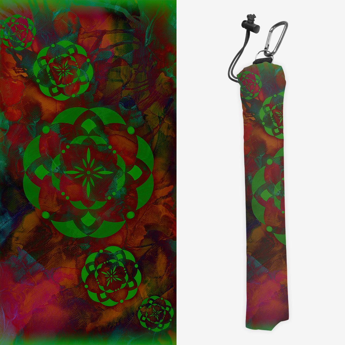 Keep your playmat in pristine condition wherever you go with one of our handcrafted playmat bags. This playmat bag is specifically designed to protect your playmat and can hold two standard sized mats at the same time (in case you need a backup or your friend forgets theirs). Each bag is made in-house and features a water-resistant coating along with a drawstring and carabiner clip for secure carrying. So you can take your game anywhere and in any weather.