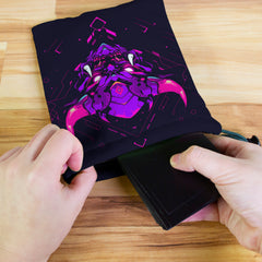 Always gaming on the go? Carry everything you need and more using our specially crafted dice bag. But this bag is designed to hold more than just dice. We make it so you can carry other essential accessories and gear with your dice, including deck boxes, life counters, extra sleeves, and pens. Quality is just as important as quantity, which is why our dice bags are crafted using premium material as well. Featuring a soft inner lining and microfiber on the inside and vibrant pre-designed artwork on the outside, our dice bag has an amazing look and feel to it!