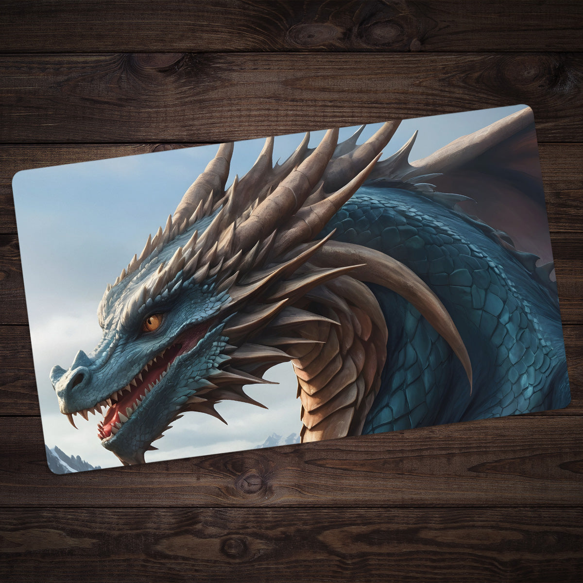 Standard Playmat measures at 24” x 14” inches and is 1/16 of an inch thick. It’s made with a smooth cloth top and strong rubber backing.