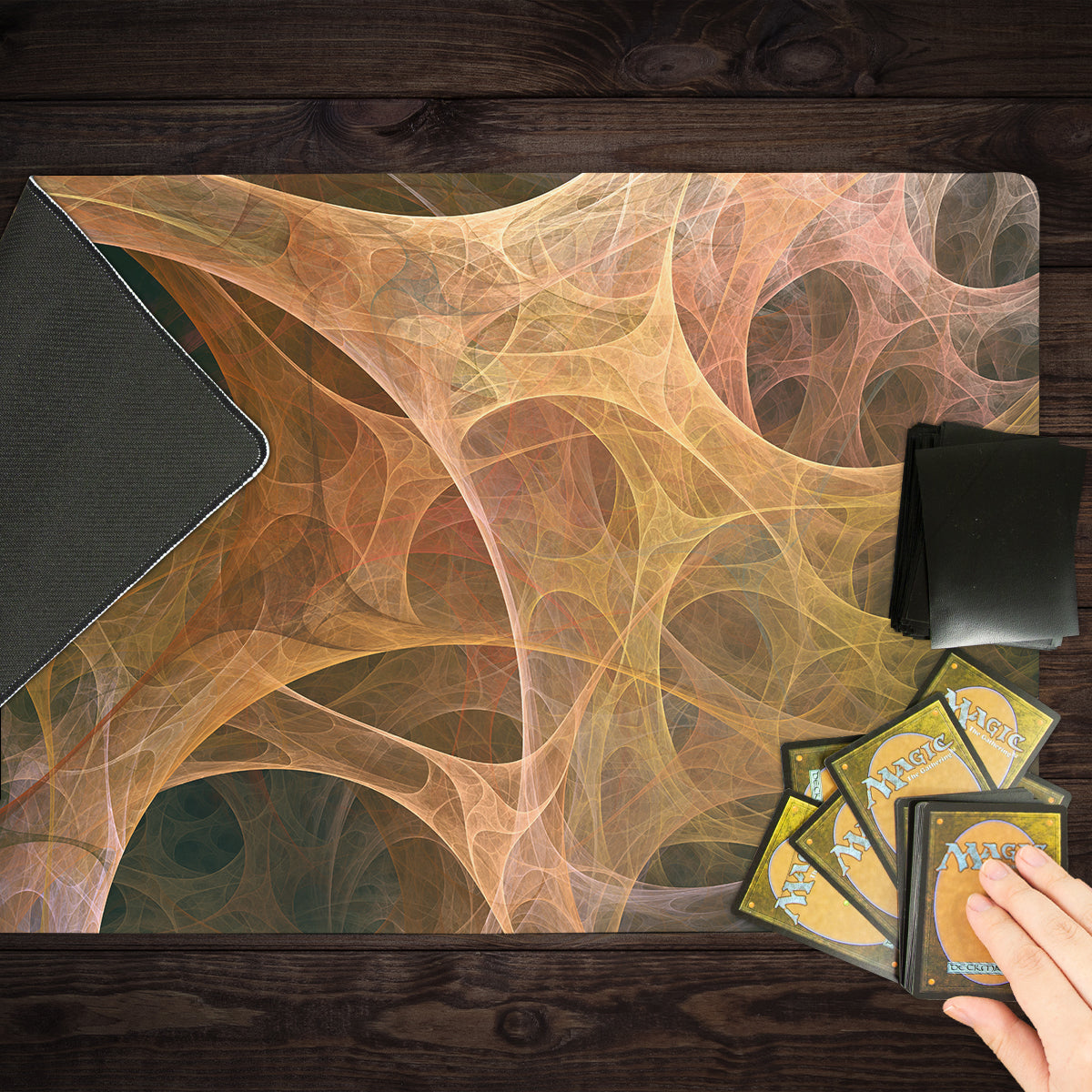 Standard Playmat measures at 24” x 14” inches and is 1/16 of an inch thick. It’s made with a smooth cloth top and strong rubber backing.