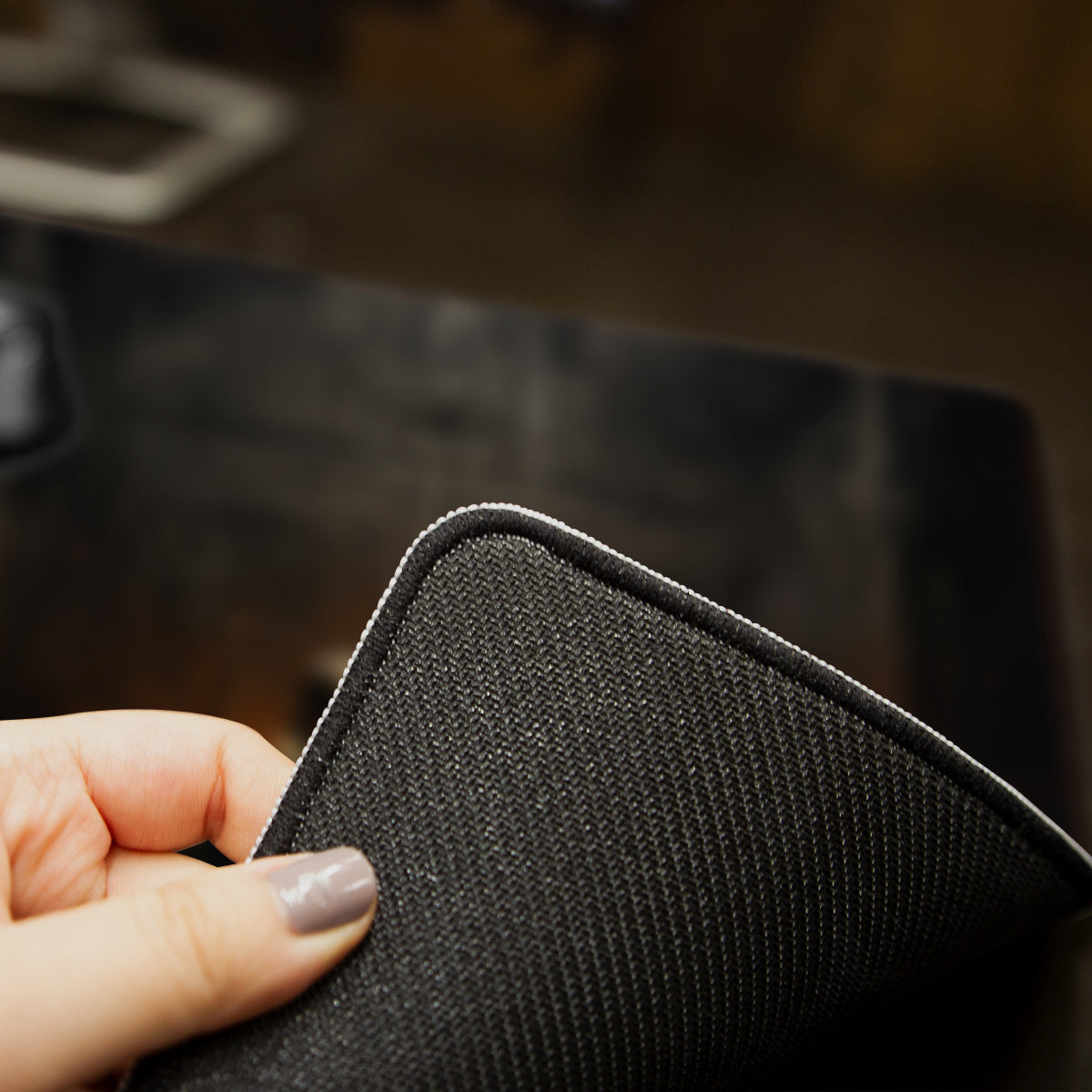 Need a new mousepad that features quality craftsmanship and creativity? Then you’ve definitely come to the right place. Our mousepads are made in-house with premium materials and unique artwork that give your battlestation the supreme look and feel that it deserves. The top is made from sleek polyester, which enables faster, more precise mouse movements. This enhanced speed and precision come in handy whether you’re working or gaming. On the bottom, there’s a strong anti-slip rubber backing that holds a nice, tight grip on your desk while you’re doing your thing. The action and traction this pad provides give you a better overall experience in completing daily tasks, deadlines, and missions of all kinds. And because we’ve added more sizing options to it, you no longer have to worry about running out of room at the worst moments either. The sizes are Classic, Large, and XL. The Classic mousepad has unstitched edges. However, the Large mousepad does include stitched edging, while the XL mousepad has both a stitched or unstitched edging option available. You can see the approximate measurements of all those sizes in the details below. We think you’ll be impressed…if you aren’t already!