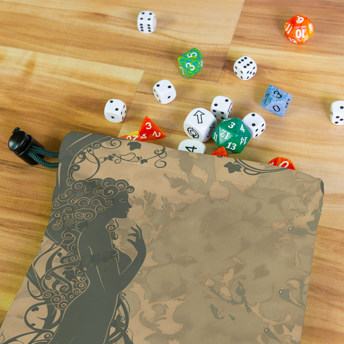 CVLPRITAlways gaming on the go? Carry everything you need and more using our specially crafted dice bag. But this bag is designed to hold more than just dice. We make it so you can carry other essential accessories and gear with your dice, including deck boxes, life counters, extra sleeves, and pens. Quality is just as important as quantity, which is why our dice bags are crafted using premium material as well. Featuring a soft inner lining and microfiber on the inside and vibrant pre-designed artwork on the outside, our dice bag has an amazing look and feel to it!