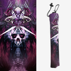 Playmat Bags are specifically designed to hold your mats in style. They are large enough to carry up to two mats. They are coated to be water resistant and include a strap with carabiner for carrying on your backpack. Our bags are hand made in house, and to order. A design that is vertical or patterned would be best for this type of product.