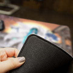 Need a new mousepad that features quality craftsmanship and creativity? Then you’ve definitely come to the right place. Our mousepads are made in-house with premium materials and unique artwork that give your battlestation the supreme look and feel that it deserves. The top is made from sleek polyester, which enables faster, more precise mouse movements. This enhanced speed and precision come in handy whether you’re working or gaming. On the bottom, there’s a strong anti-slip rubber backing that holds a nice, tight grip on your desk while you’re doing your thing. The action and traction this pad provides give you a better overall experience in completing daily tasks, deadlines, and missions of all kinds. And because we’ve added more sizing options to it, you no longer have to worry about running out of room at the worst moments either. The sizes are Classic, Large, and XL. The Classic mousepad has unstitched edges. However, the Large mousepad does include stitched edging, while the XL mousepad has both a stitched or unstitched edging option available. You can see the approximate measurements of all those sizes in the details below. We think you’ll be impressed…if you aren’t already!