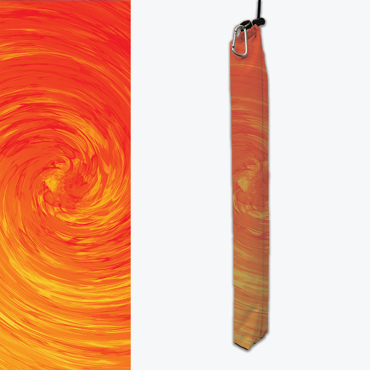 Playmat Bags are specifically designed to hold your mats in style. They are large enough to carry up to two mats. They are coated to be water resistant and include a strap with carabiner for carrying on your backpack. Our bags are hand made in house, and to order. A design that is vertical or patterned would be best for this type of product.