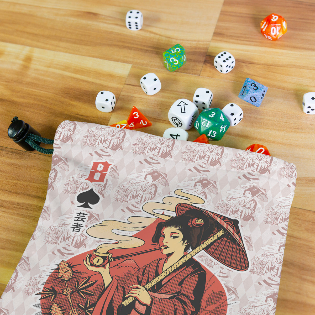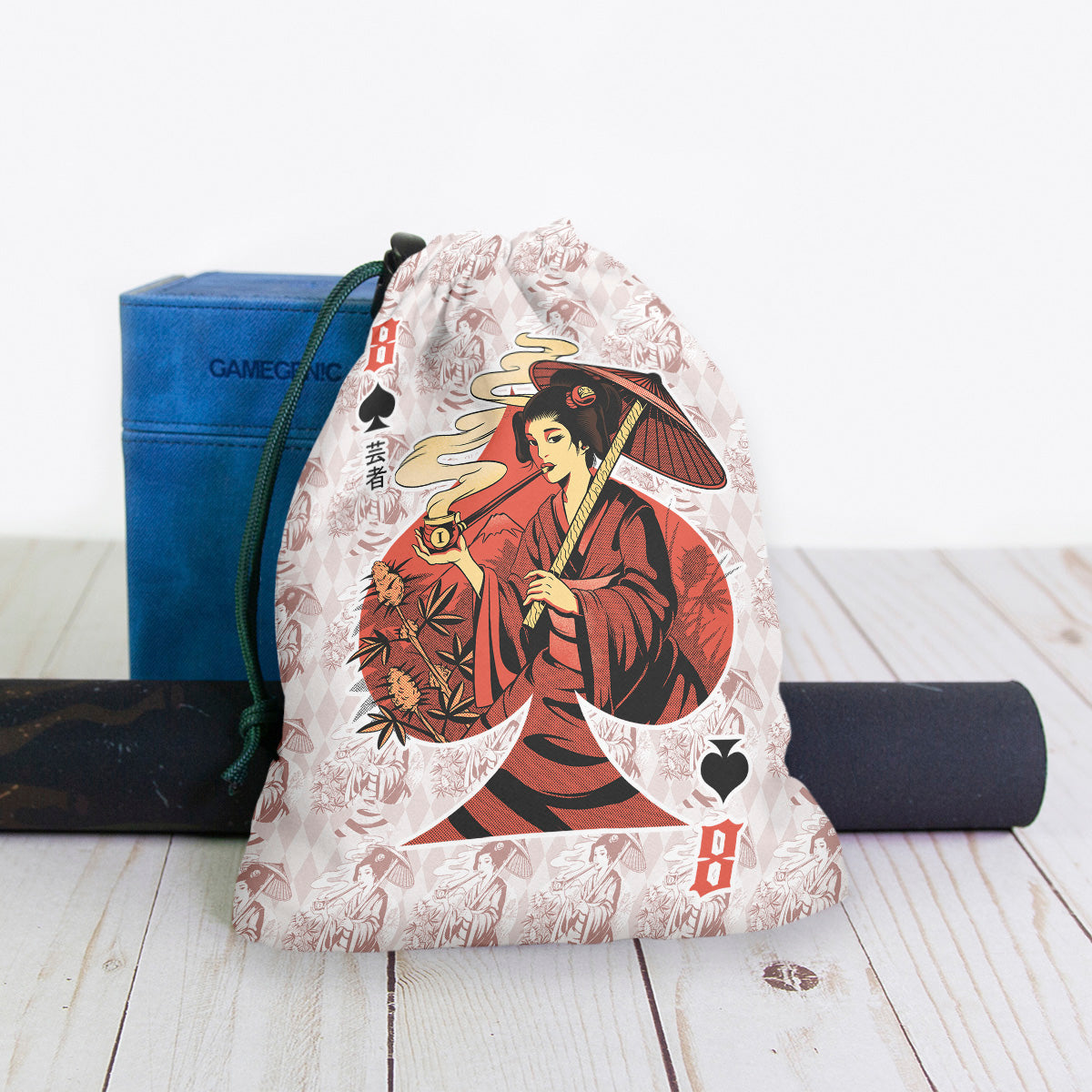 IlustrataAlways gaming on the go? Carry everything you need and more using our specially crafted dice bag. But this bag is designed to hold more than just dice. We make it so you can carry other essential accessories and gear with your dice, including deck boxes, life counters, extra sleeves, and pens. Quality is just as important as quantity, which is why our dice bags are crafted using premium material as well. Featuring a soft inner lining and microfiber on the inside and vibrant pre-designed artwork on the outside, our dice bag has an amazing look and feel to it!