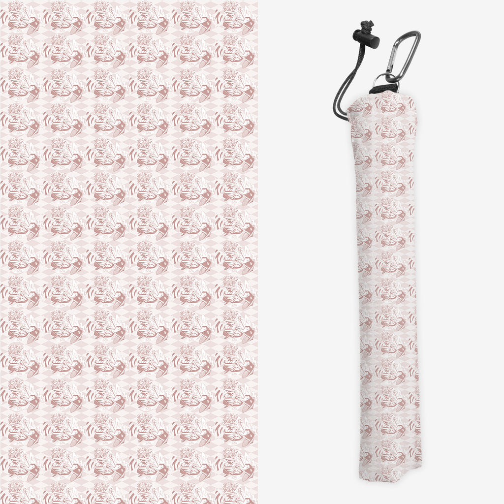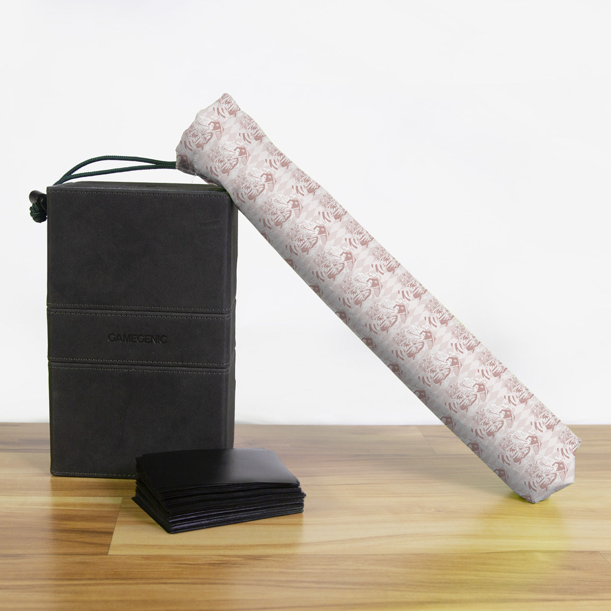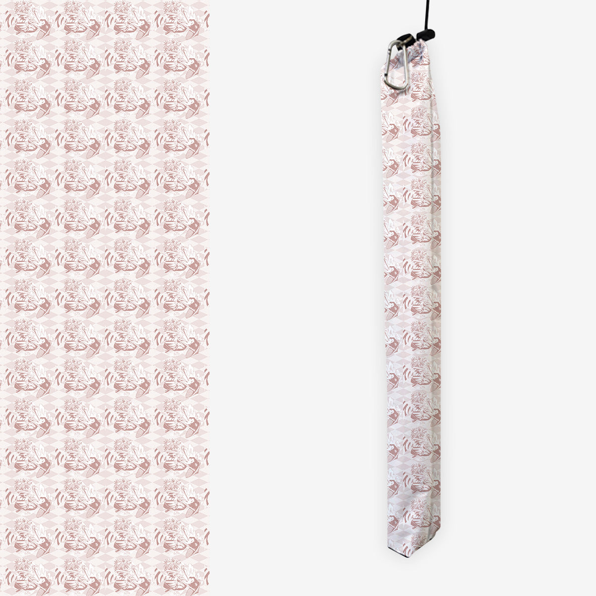 Playmat Bags are specifically designed to hold your mats in style. They are large enough to carry up to two mats. They are coated to be water resistant and include a strap with carabiner for carrying on your backpack. Our bags are hand made in house, and to order. A design that is vertical or patterned would be best for this type of product.