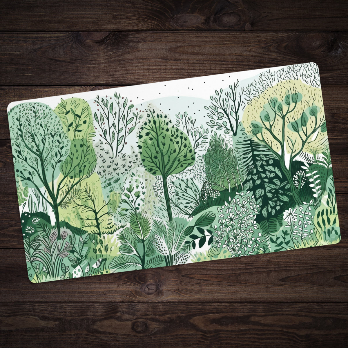 Standard Playmat measures at 24” x 14” inches and is 1/16 of an inch thick. It’s made with a smooth cloth top and strong rubber backing.