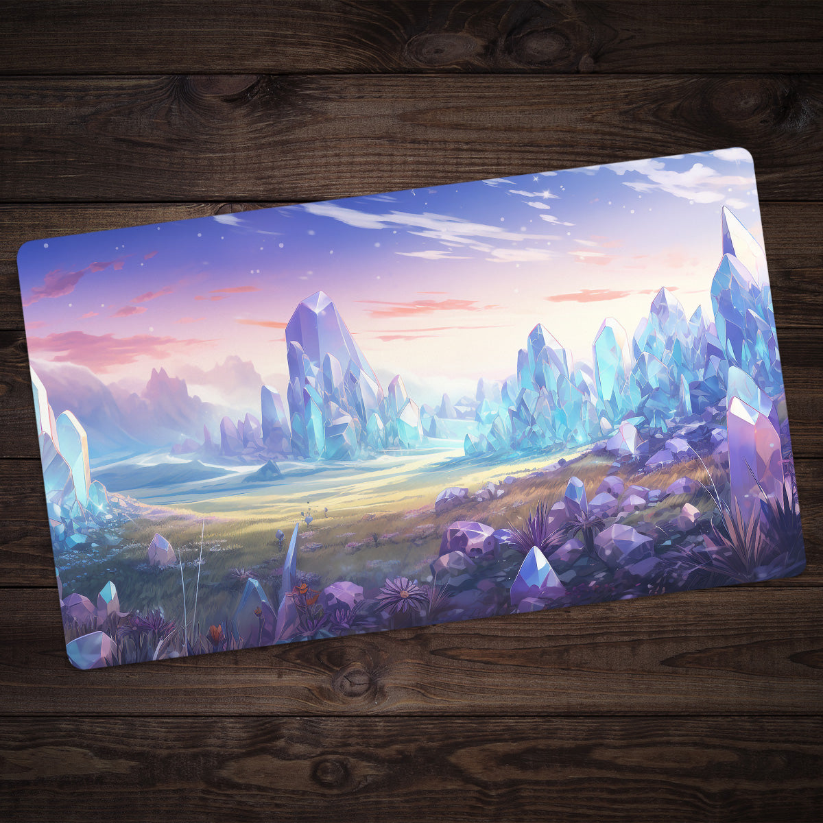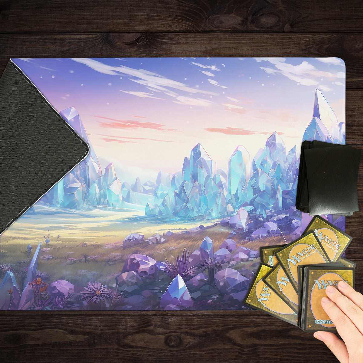 Standard Playmat measures at 24” x 14” inches and is 1/16 of an inch thick. It’s made with a smooth cloth top and strong rubber backing.
