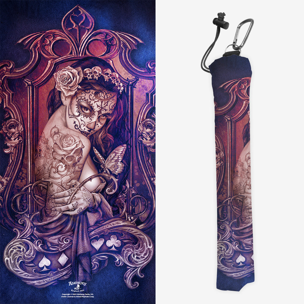 Keep your playmat in pristine condition wherever you go with one of our handcrafted playmat bags. This playmat bag is specifically designed to protect your playmat and can hold two standard sized mats at the same time (in case you need a backup or your friend forgets theirs). Each bag is made in-house and features a water-resistant coating along with a drawstring and carabiner clip for secure carrying. So you can take your game anywhere and in any weather.