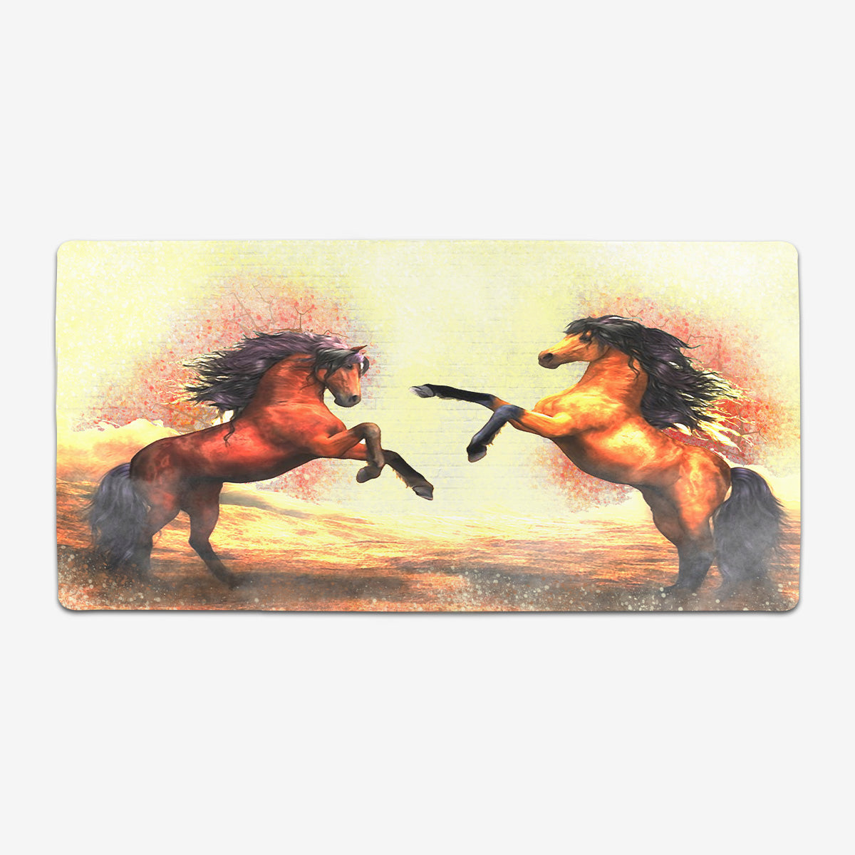Upgrade your battlestation with one of the biggest and best mousepads available! Our Extended mousepads are handcrafted from the finest, most durable materials that allow you to get the most out of your game. Their extra-long frames allow for bigger and more extreme maneuvers, which means you’ll never run out of room again. These pads also feature a smooth polyester material on the top, rugged stitches on the edges and strong rubber backing on the bottom. United, these materials create a mousepad with a premium look and feel that any gamer will appreciate. You haven’t had a true gaming experience until you’ve played on one of these magnificent mousepads! Furthermore, the stitched edging (available in black on the 35” x 16” and white on the 48” x 24” and 36" x 18") not only looks great, but is ideal for keeping your pad free of fray each time you play. (Reminder: The black stitched edging is only available for the 35”x16” mousepad. 48” x 24” and 36" x 18" mousepads have white stitched edging that bleeds into the edge of the artwork.)