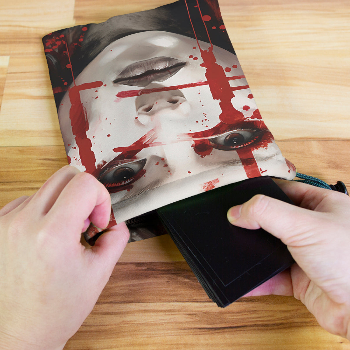 Always gaming on the go? Carry everything you need and more using our specially crafted dice bag. But this bag is designed to hold more than just dice. We make it so you can carry other essential accessories and gear with your dice, including deck boxes, life counters, extra sleeves, and pens. Quality is just as important as quantity, which is why our dice bags are crafted using premium material as well. Featuring a soft inner lining and microfiber on the inside and vibrant pre-designed artwork on the outside, our dice bag has an amazing look and feel to it!