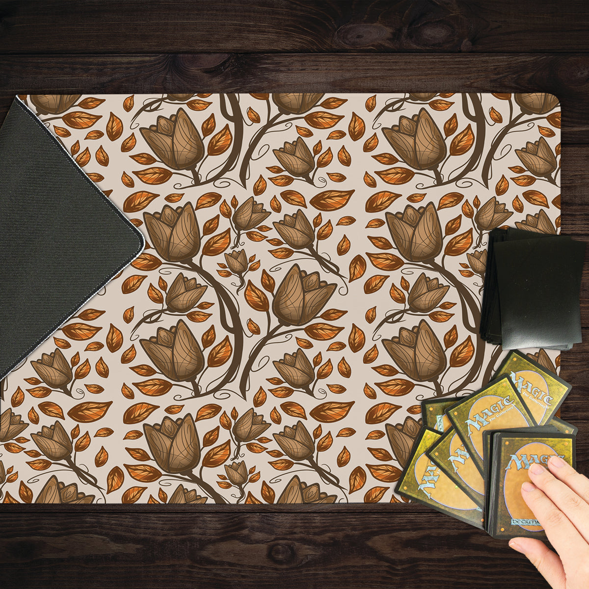 Standard Playmat measures at 24” x 14” inches and is 1/16 of an inch thick. It’s made with a smooth cloth top and strong rubber backing.
