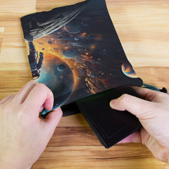 Always gaming on the go? Carry everything you need and more using our specially crafted dice bag. But this bag is designed to hold more than just dice. We make it so you can carry other essential accessories and gear with your dice, including deck boxes, life counters, extra sleeves, and pens. Quality is just as important as quantity, which is why our dice bags are crafted using premium material as well. Featuring a soft inner lining and microfiber on the inside and vibrant pre-designed artwork on the outside, our dice bag has an amazing look and feel to it!